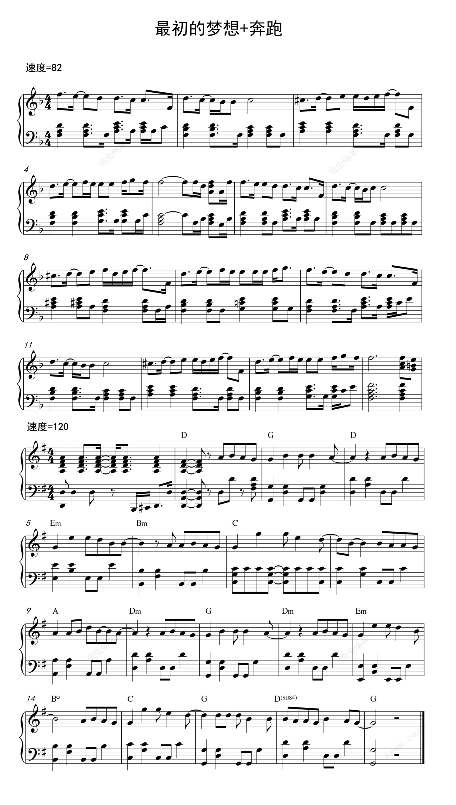 钢琴谱:(骑在银龙背上)最初的梦想+奔跑