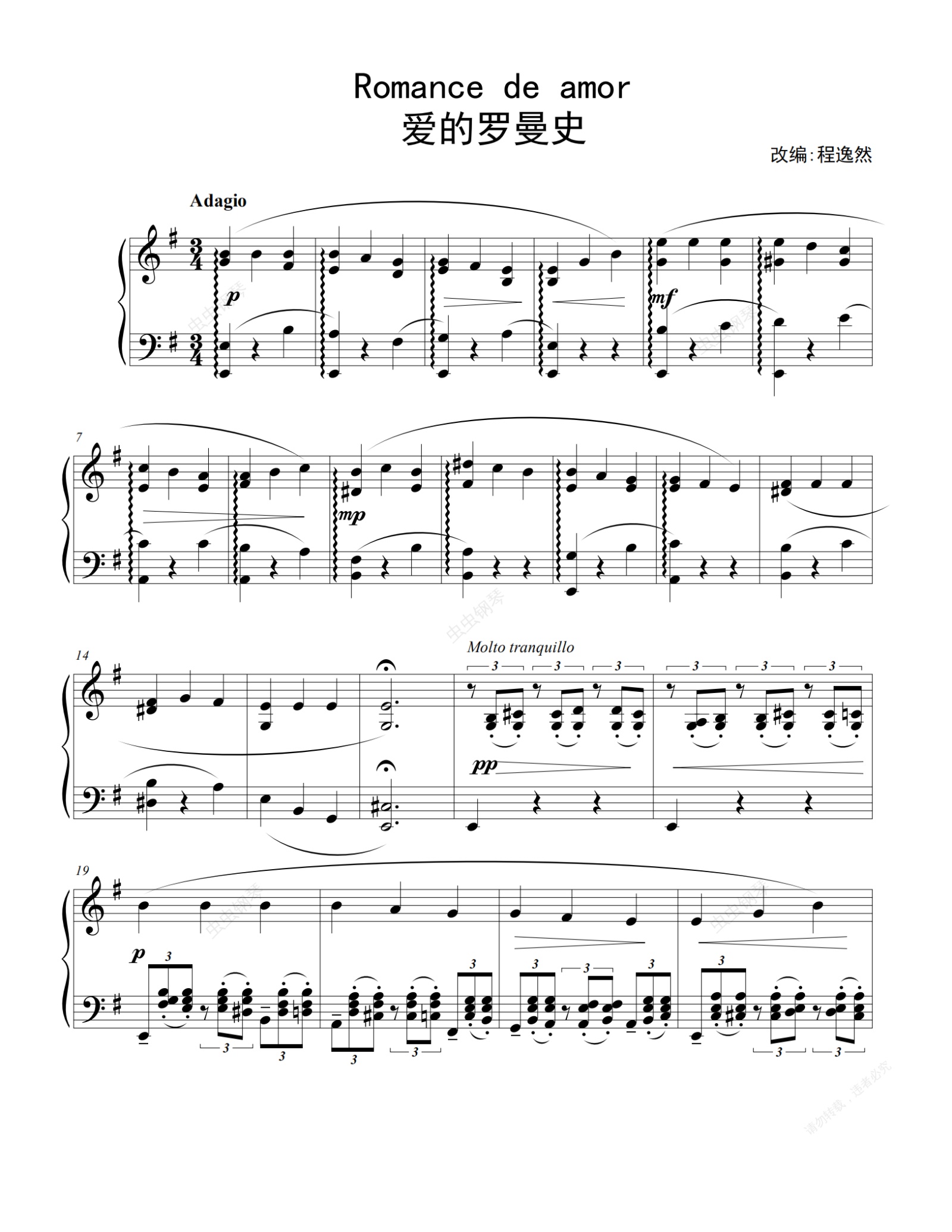 钢琴谱:爱的罗曼史Romance of Love(展开改编版,有一定丰富度与演奏难度)