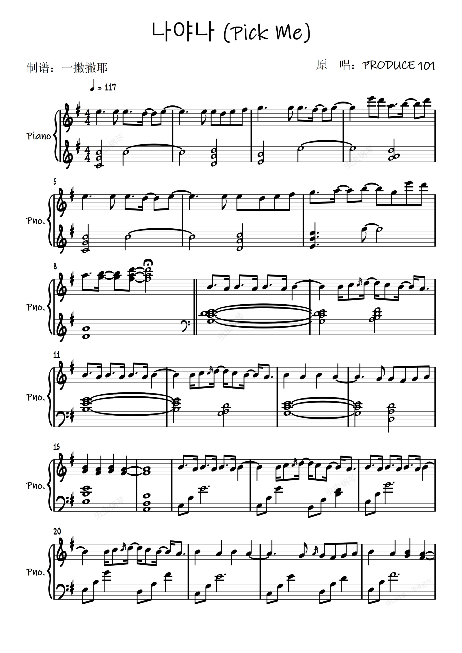 钢琴谱:나야나 (Pick Me)【钢琴版极限还原】Produce 101「一撇撇耶」
