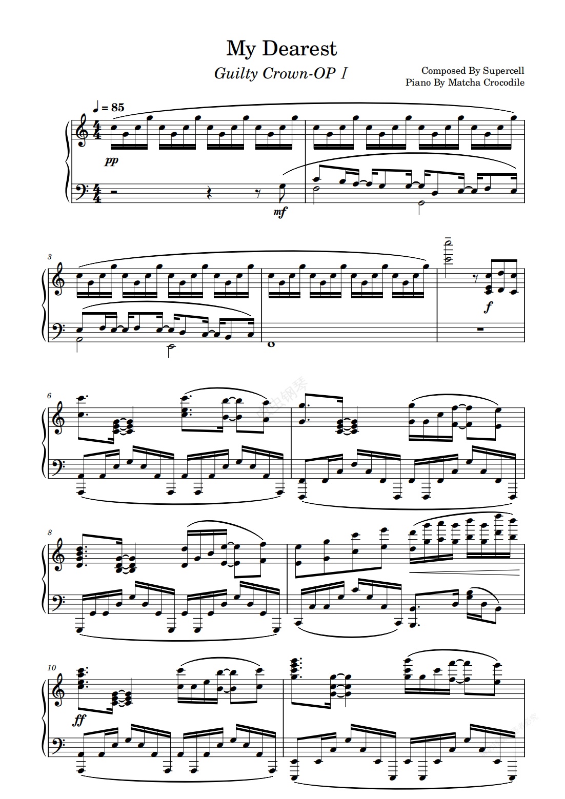 钢琴谱:罪恶王冠OP1-My Dearest