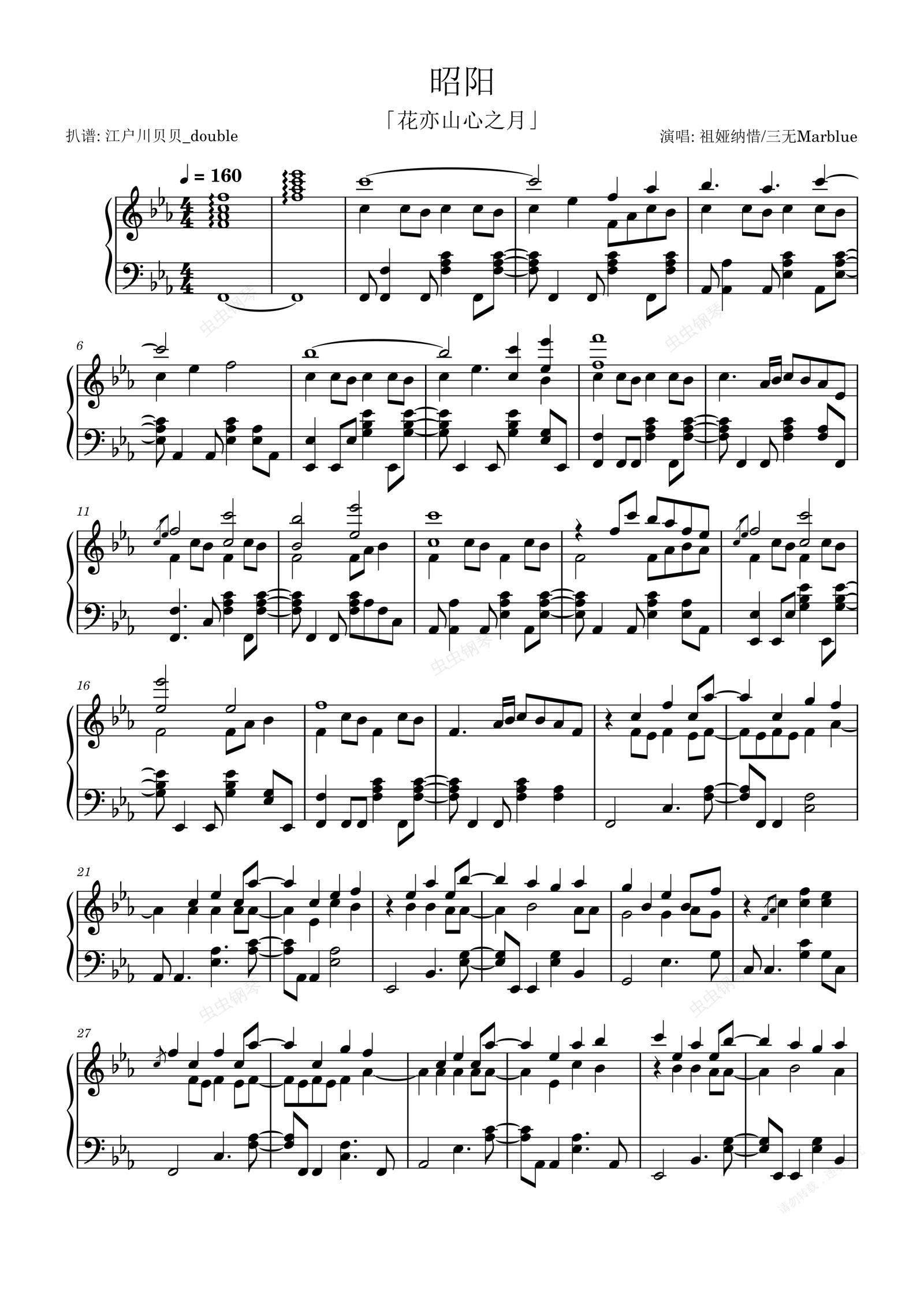 钢琴谱:【花亦山心之月】《昭阳》(祖娅纳惜X三无Marblue)