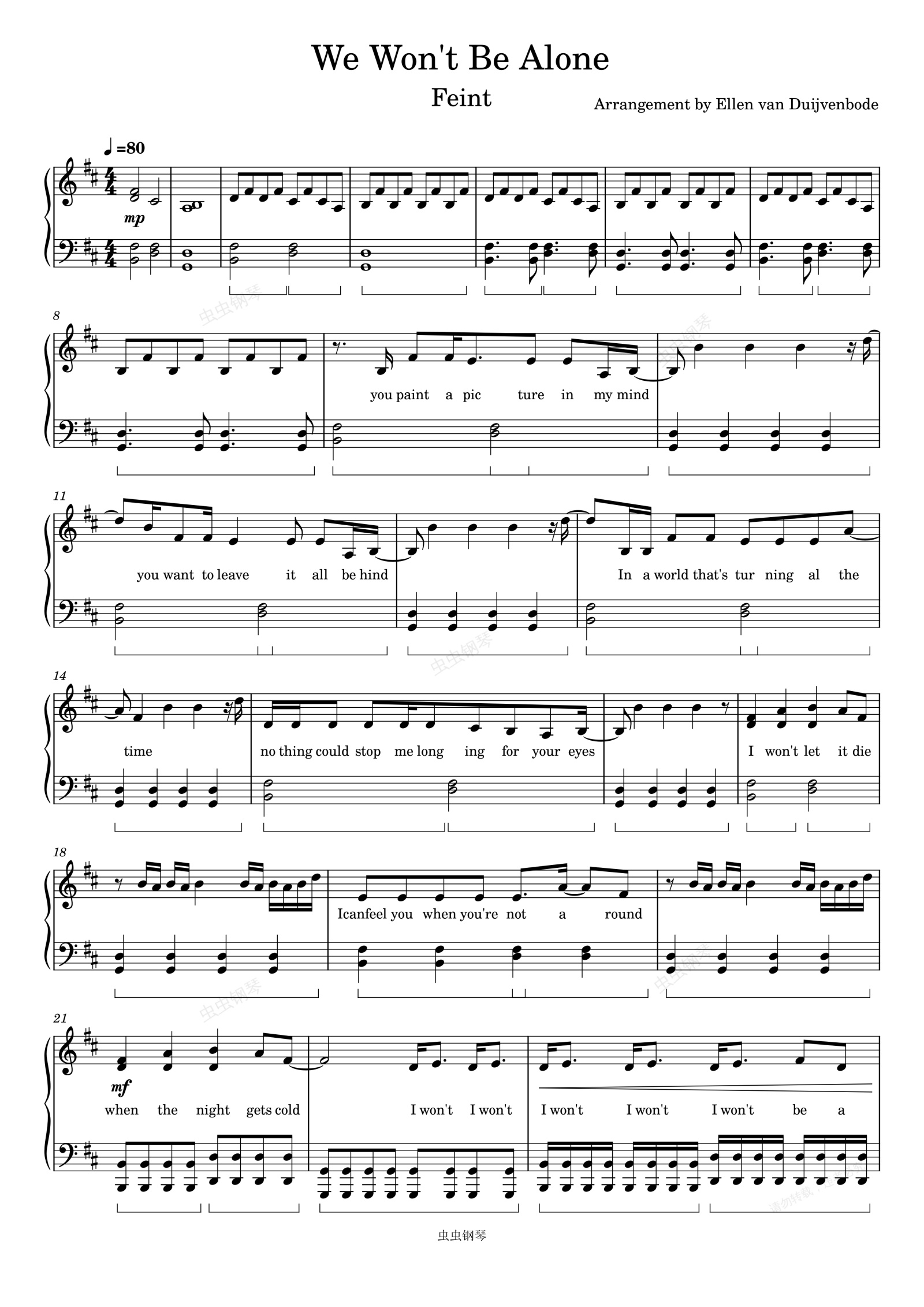 钢琴谱:Feint-We Won't Be Alone