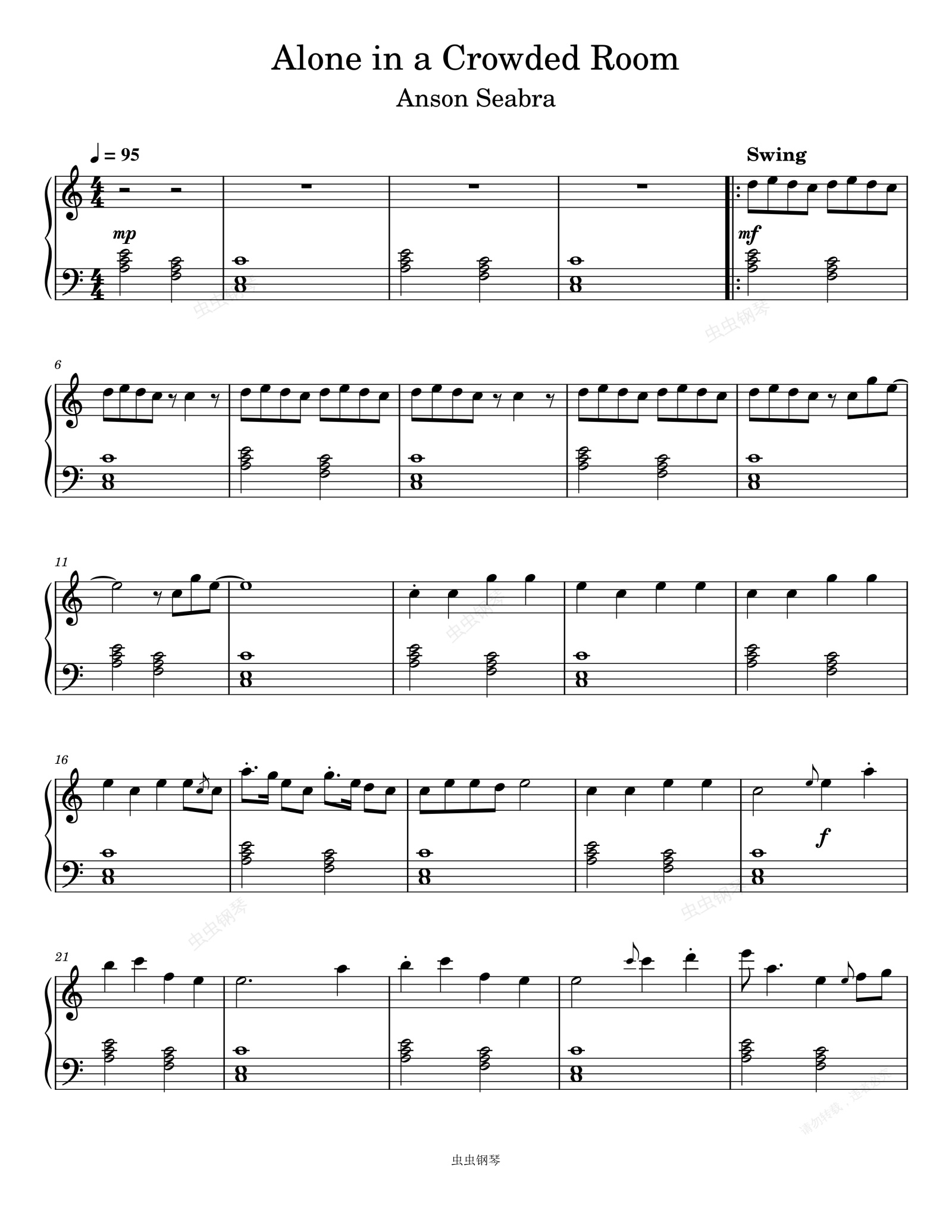 钢琴谱:Alone in a Crowded Room - Anson Seabra