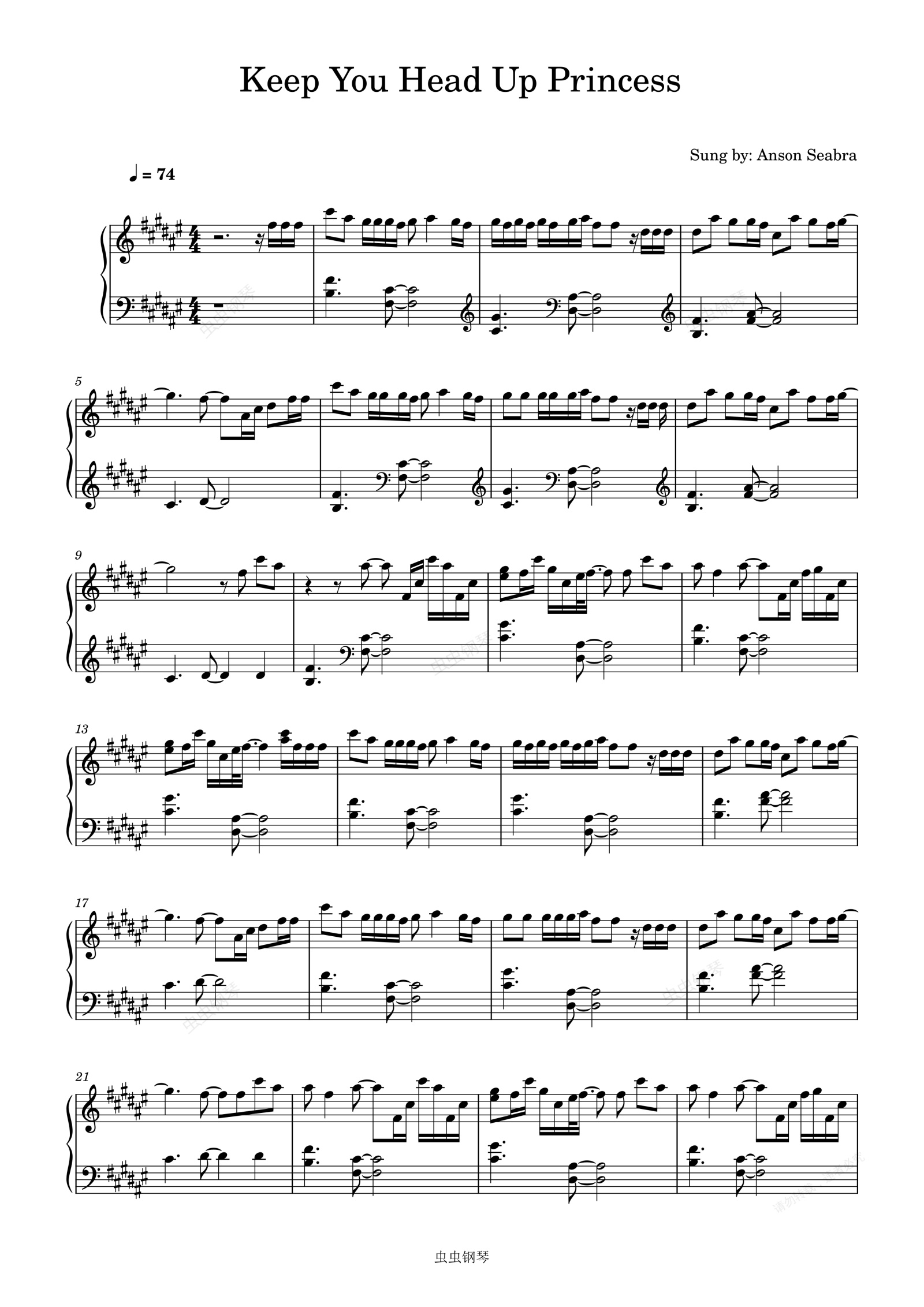 钢琴谱:Keep You Head Up Princess-Anson Seabra