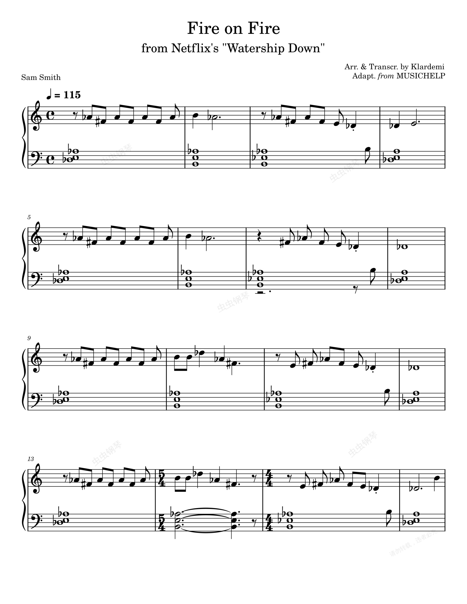 钢琴谱:Fire On Fire-Sam Smith
