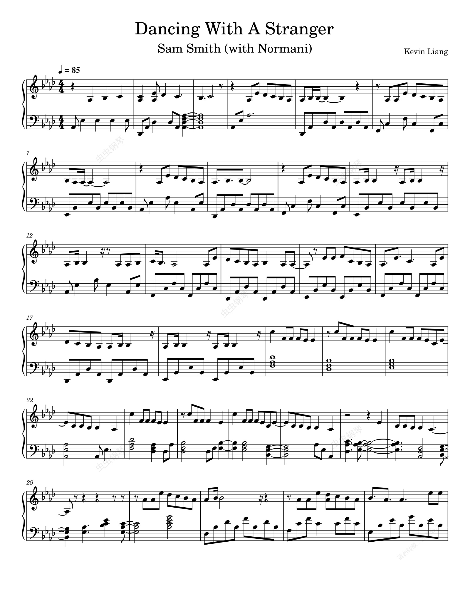 钢琴谱:Dancing With A Stranger-Sam Smith / Normani