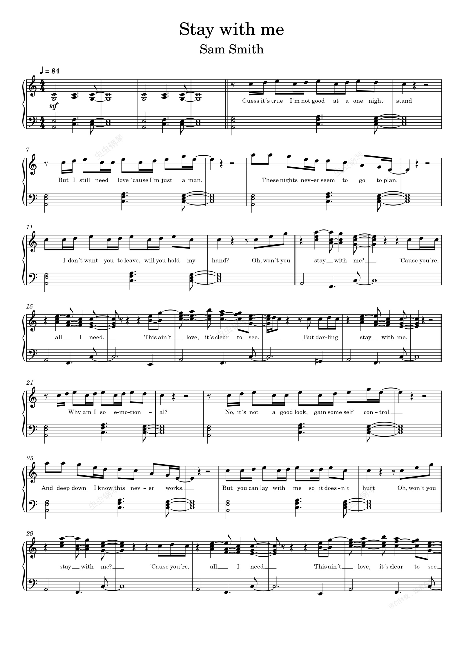 钢琴谱:Stay With Me (Sam Smith)