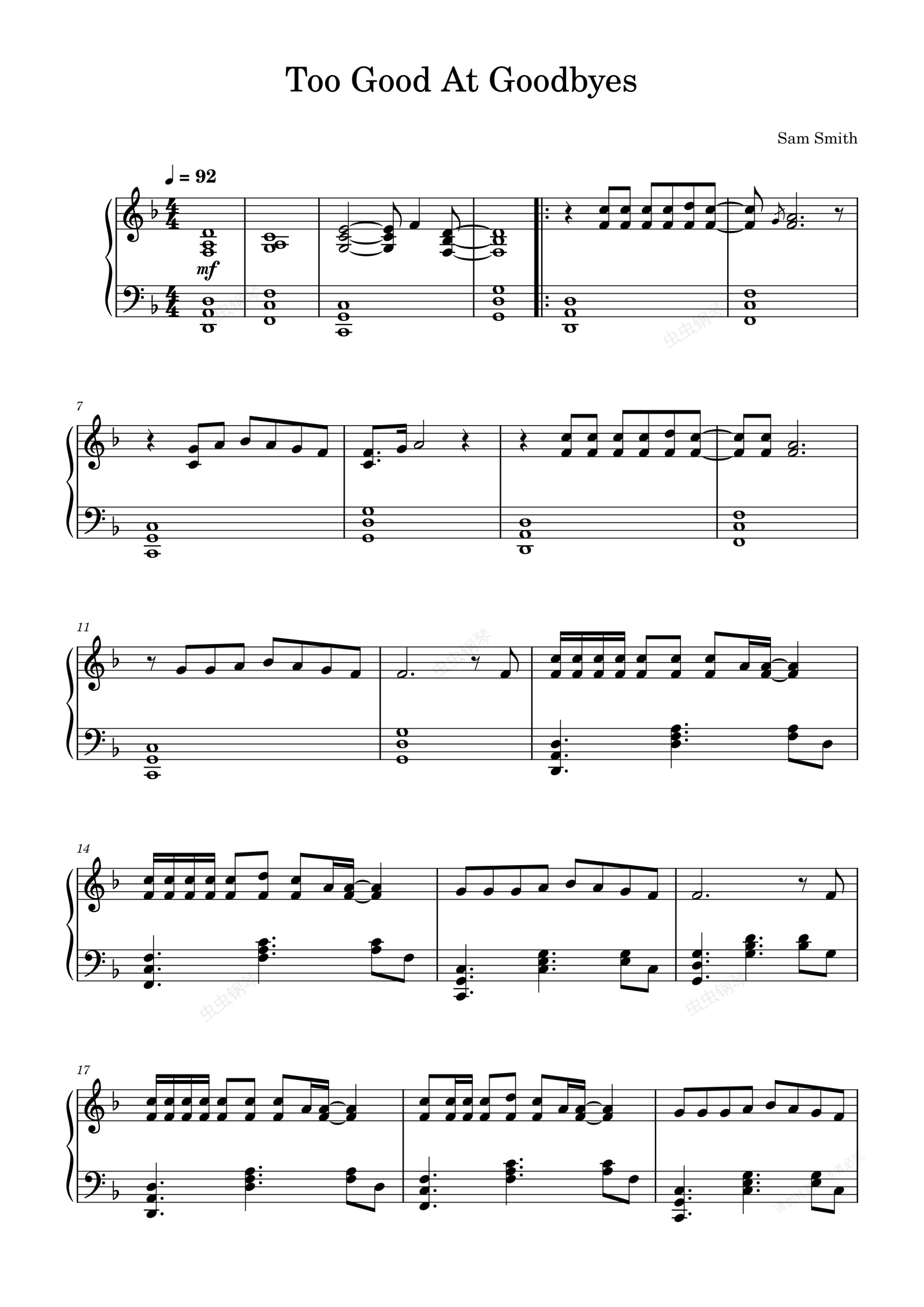 钢琴谱:Too Good At Goodbyes-Sam Smith