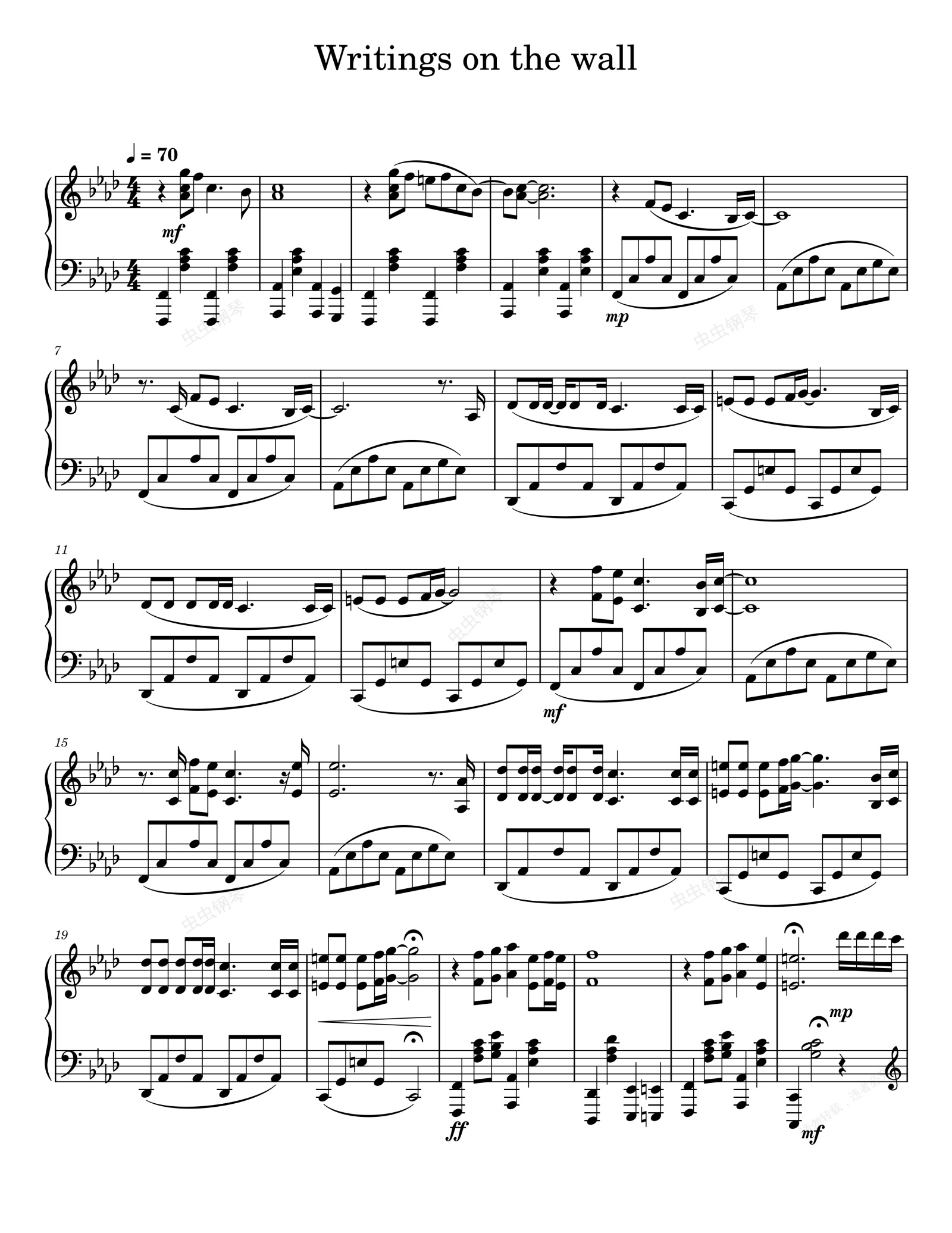 钢琴谱:007:幽灵党 电影 Writing's On The Wall-Sam Smith