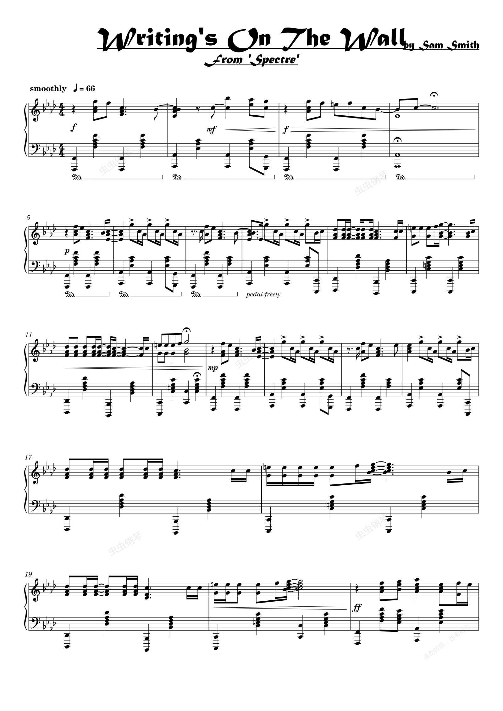 钢琴谱:007:幽灵党 电影 Writing's On The Wall-Sam Smith