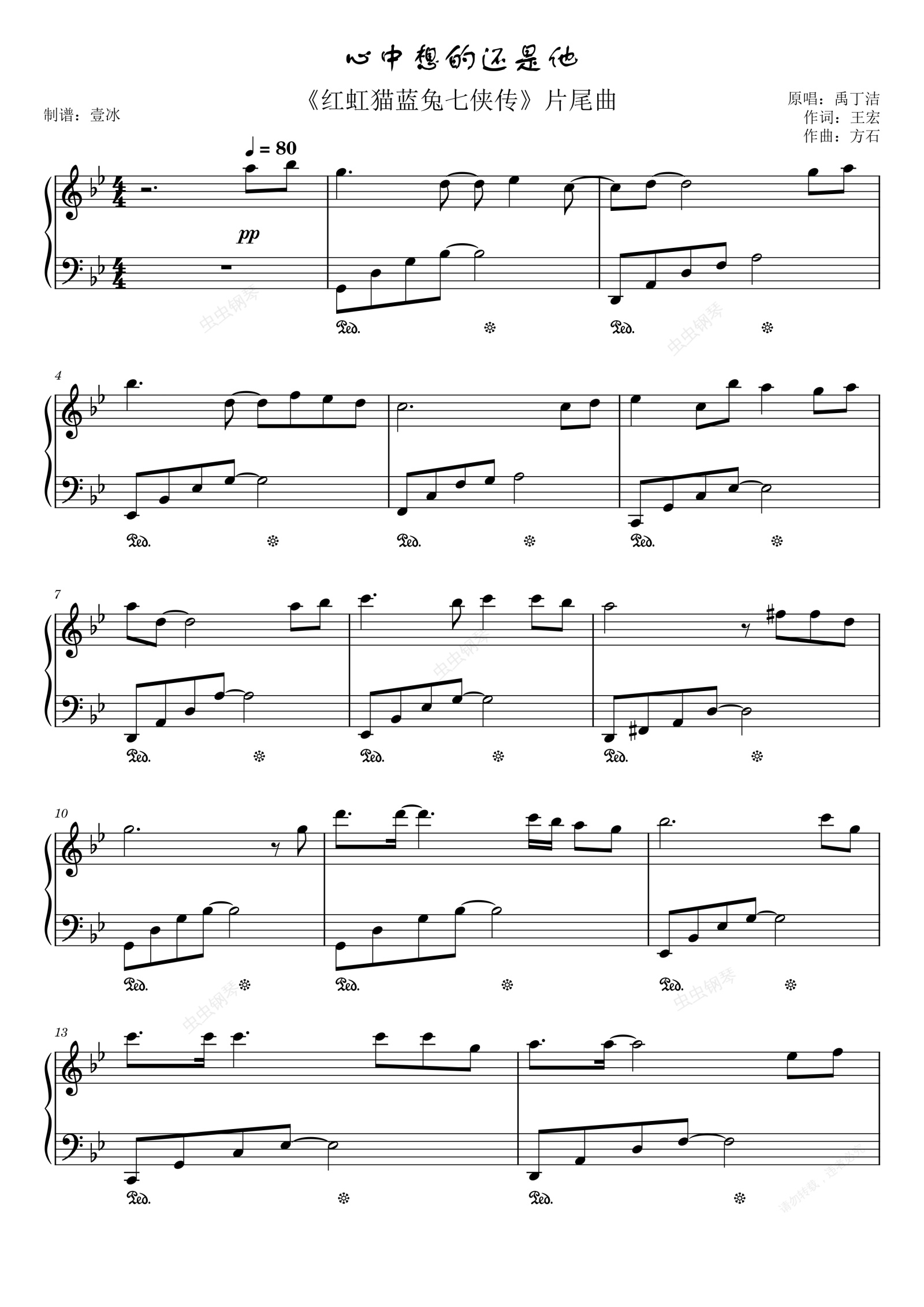 钢琴谱:心中想的还是他//《虹猫蓝兔七侠传》片尾曲