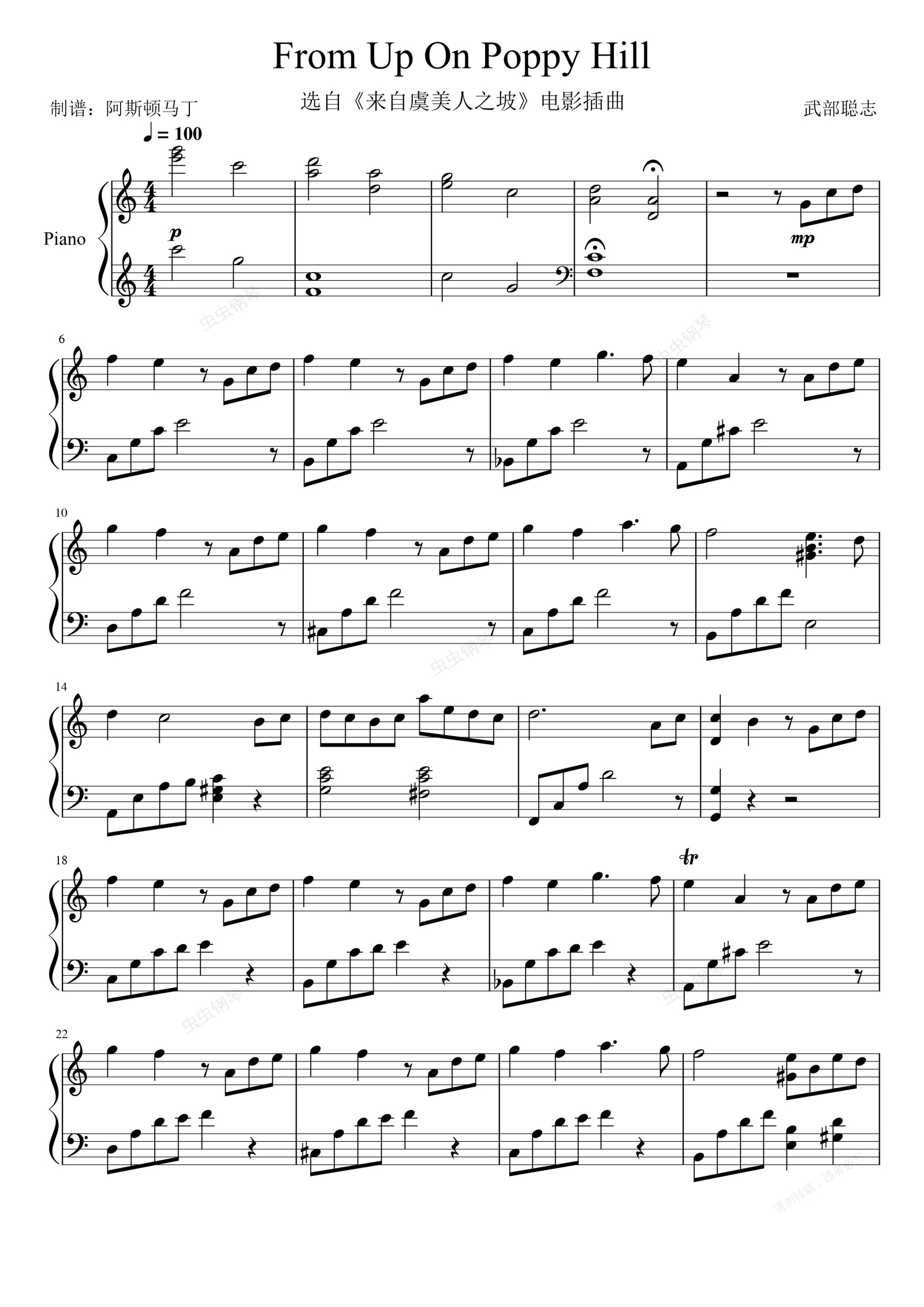 钢琴谱:From Up On Poppy Hill 【原版高度还原】