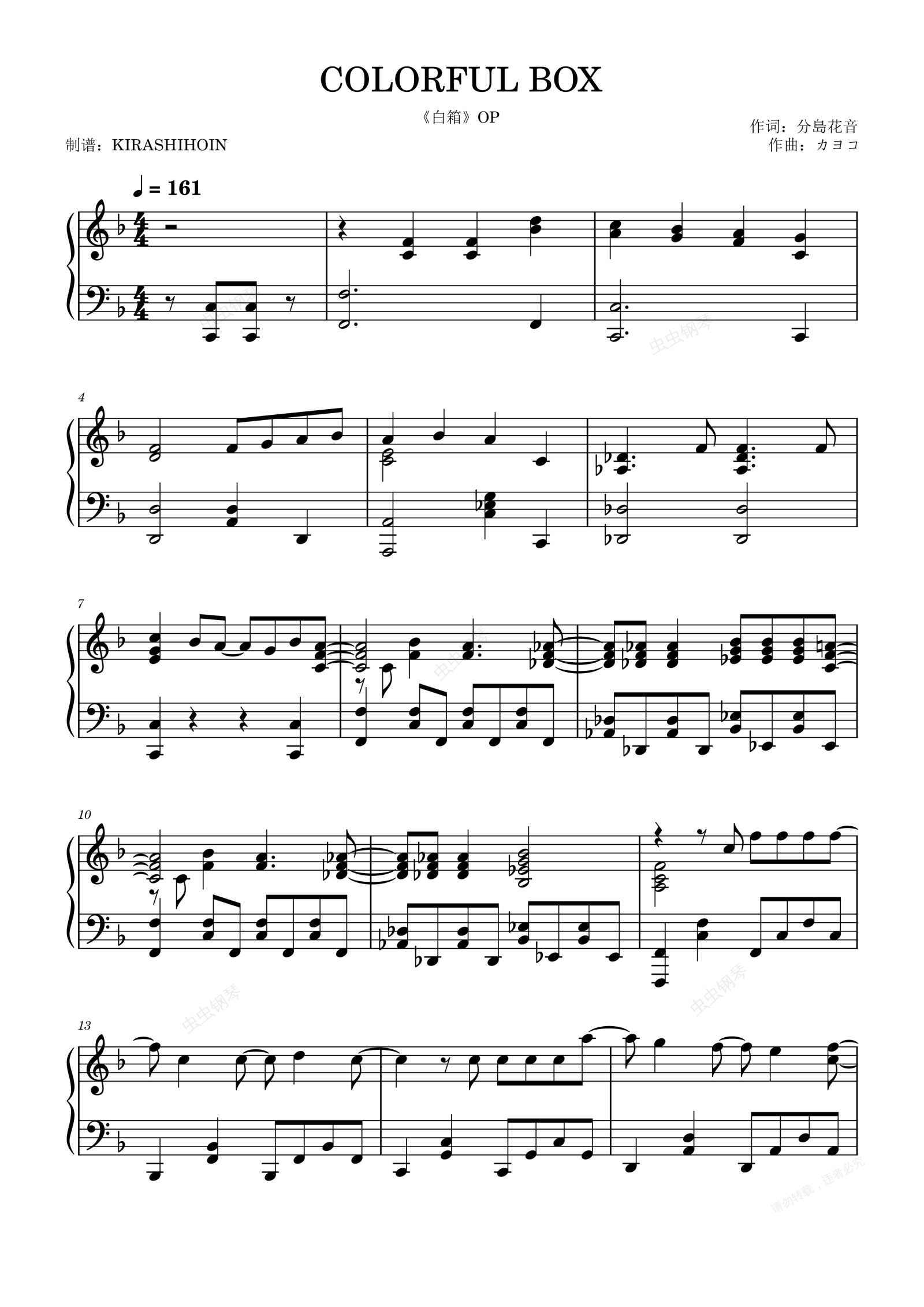 钢琴谱:COLORFUL BOX(《白箱》OP/片头曲)- 石田燿子