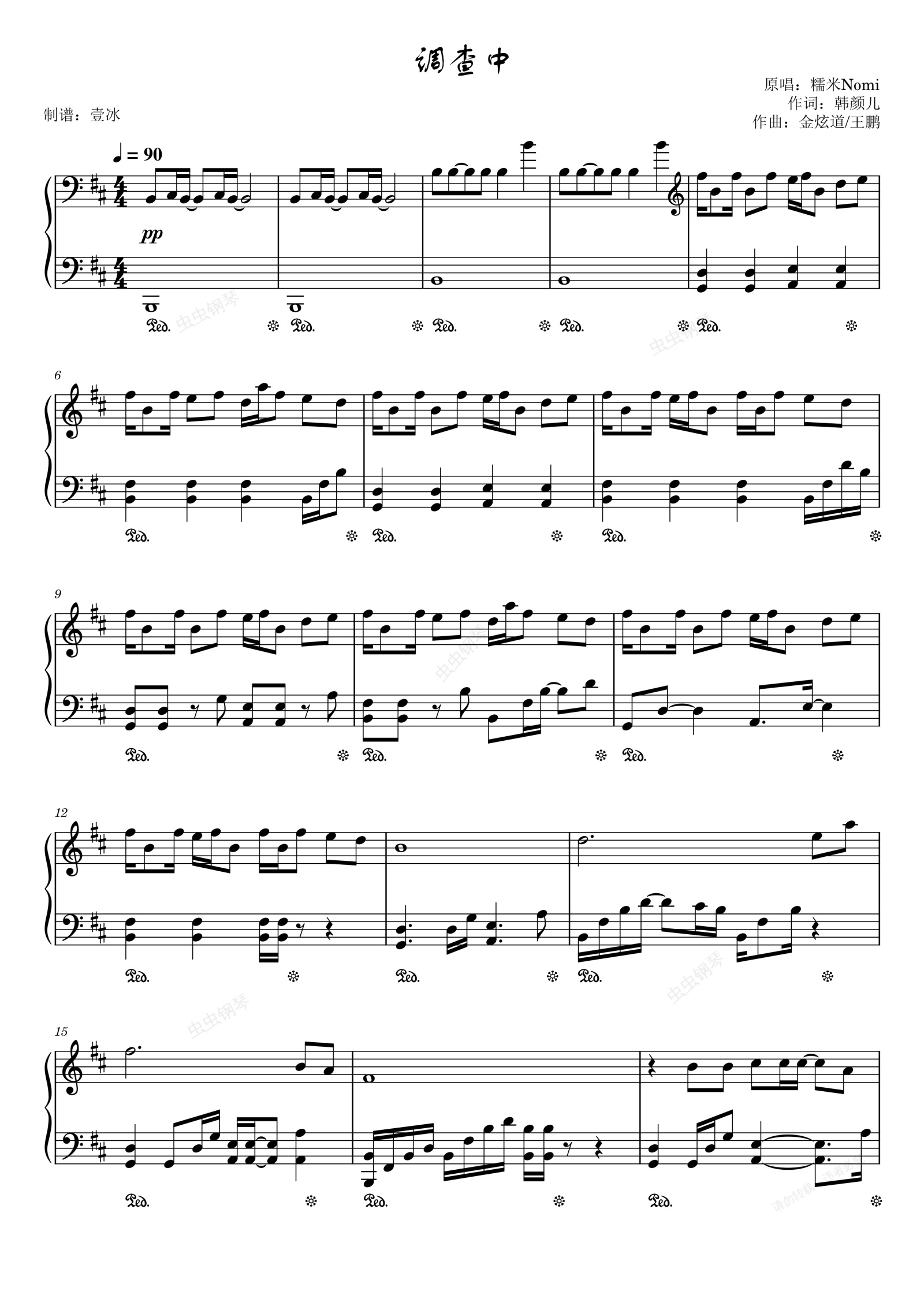 钢琴谱:调查中//糯米Nomi演唱-原调版