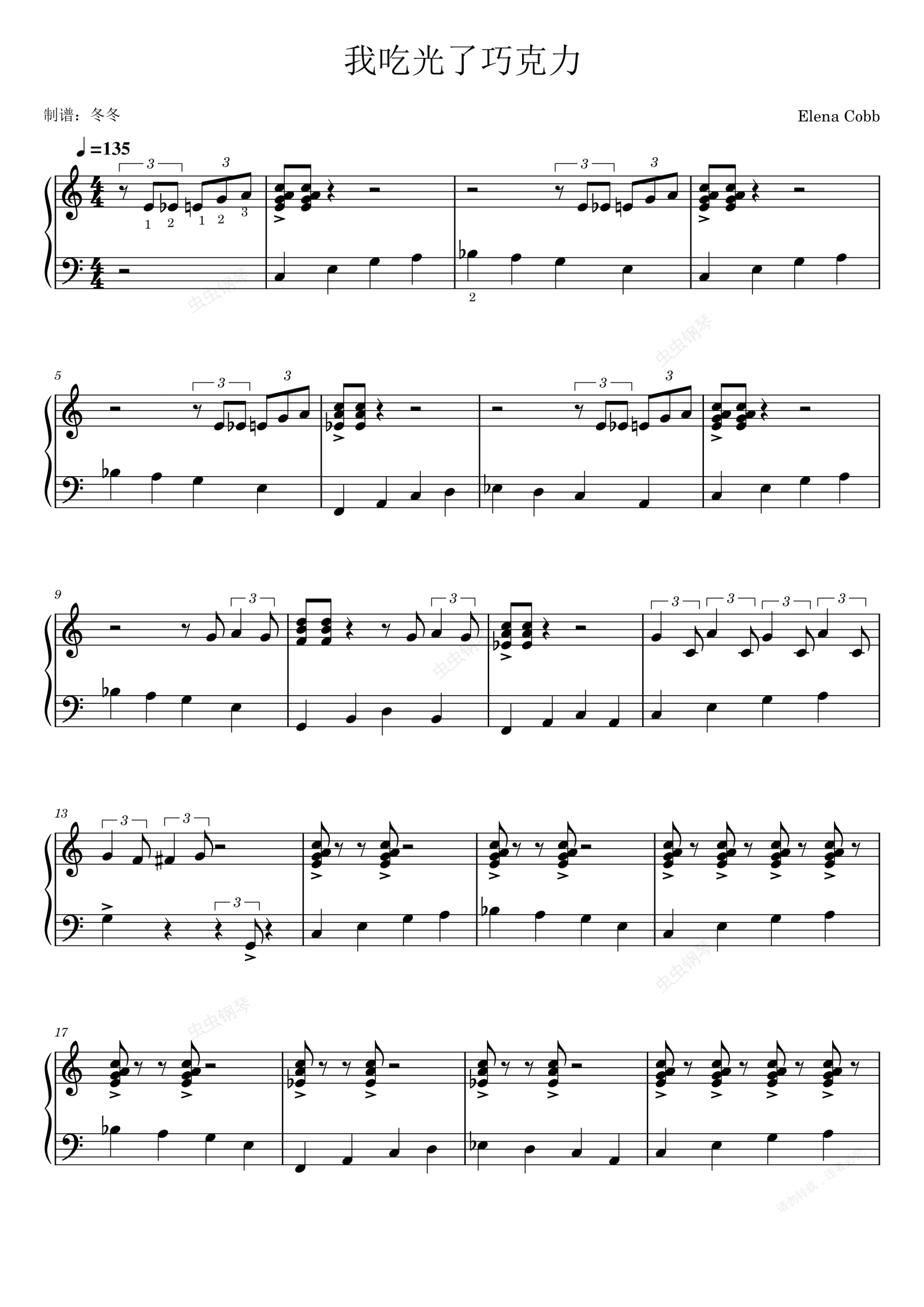 钢琴谱:我吃光了巧克力
