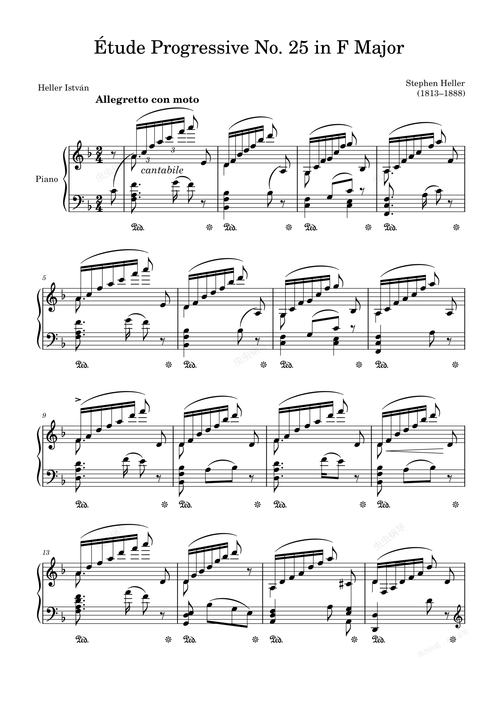 钢琴谱:Étude Progressive Opus 46 No. 25 in F Major – Heller