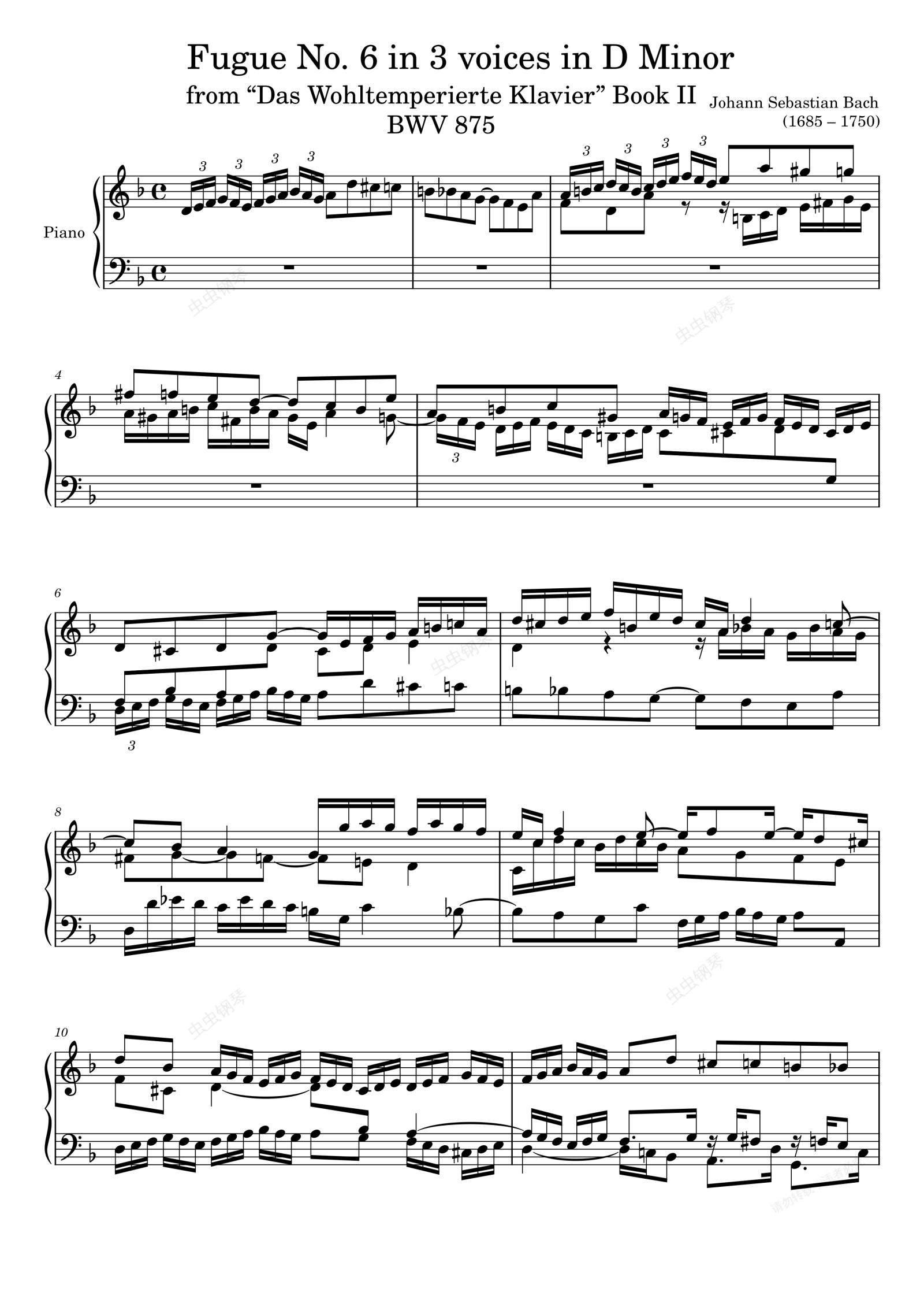 钢琴谱:Fugue No. 6 BWV 875 in D Minor