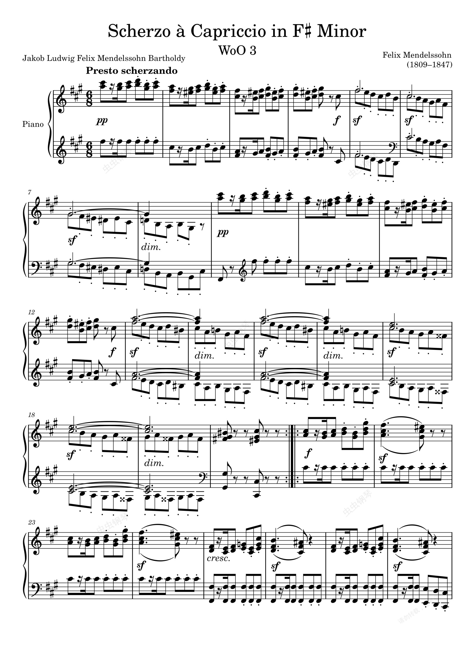 钢琴谱:Scherzo à Capriccio WoO 3 in F♯ Minor