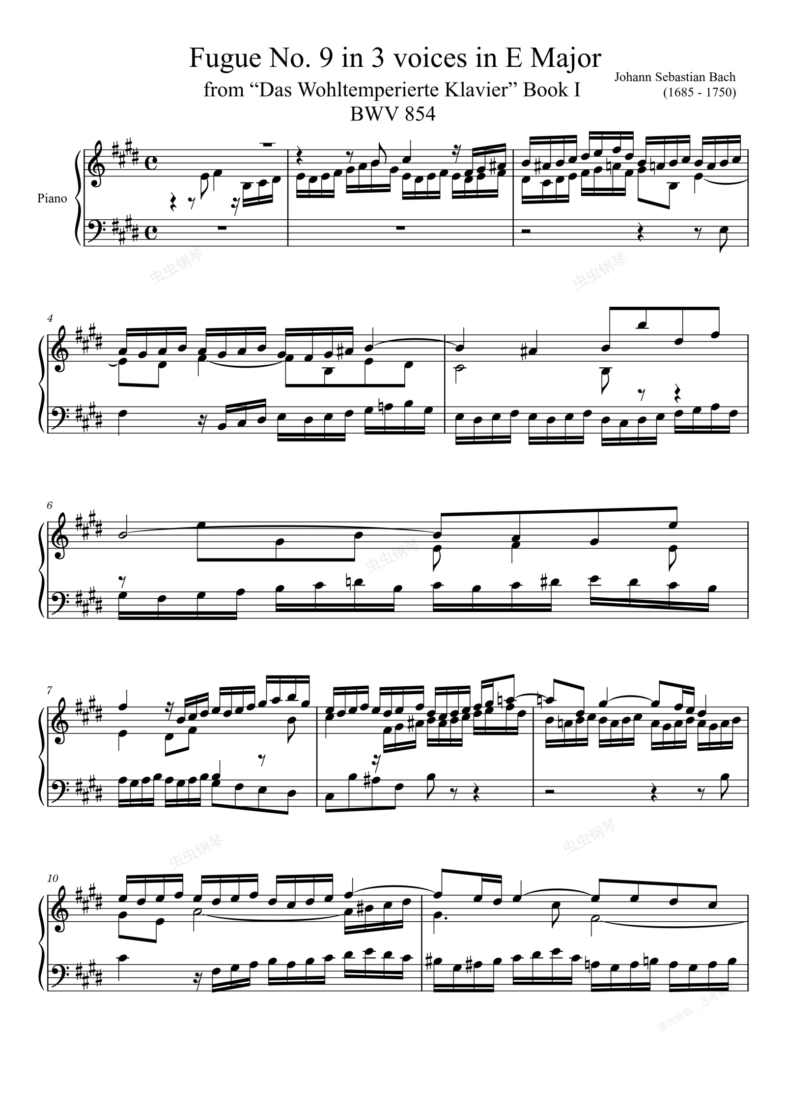 钢琴谱:Fugue No. 9 BWV 854 in E Major
