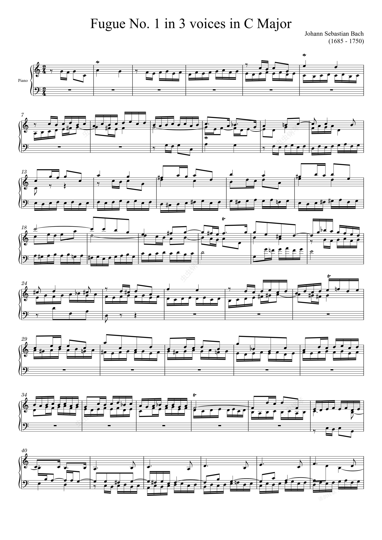 钢琴谱:Fugue No. 1 BWV 870 in C Major