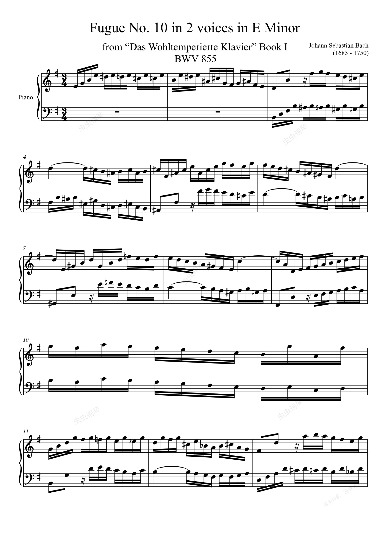 钢琴谱:Fugue No. 10 BWV 855 in E Minor