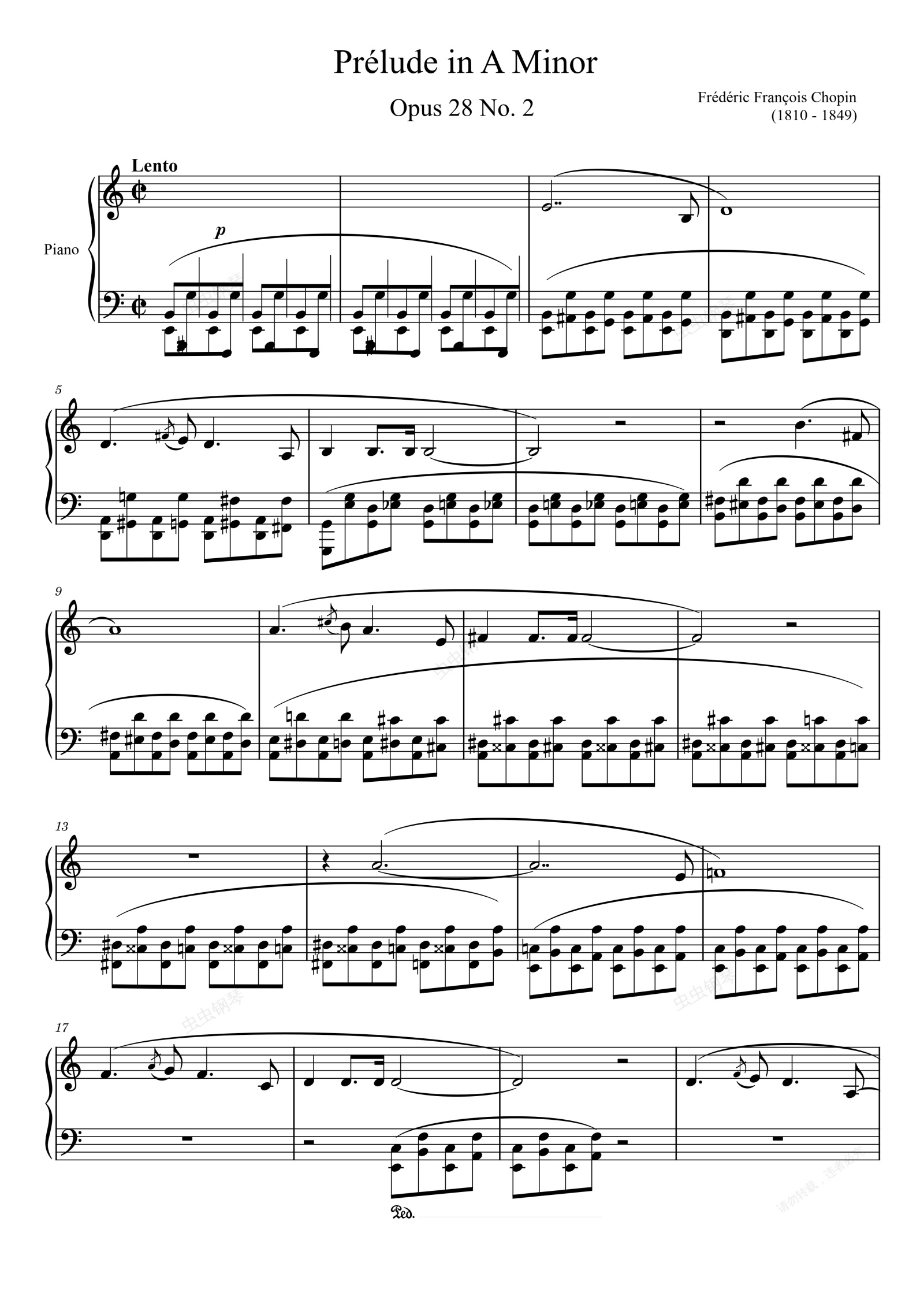 钢琴谱:Prélude Opus 28, No. 2 in A Minor