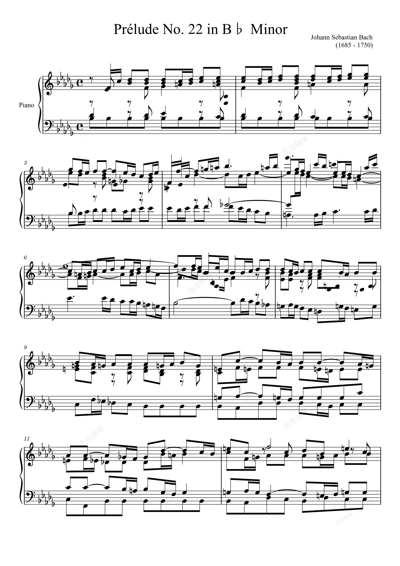钢琴谱:Prélude No. 22 BWV 867 in B♭ Minor