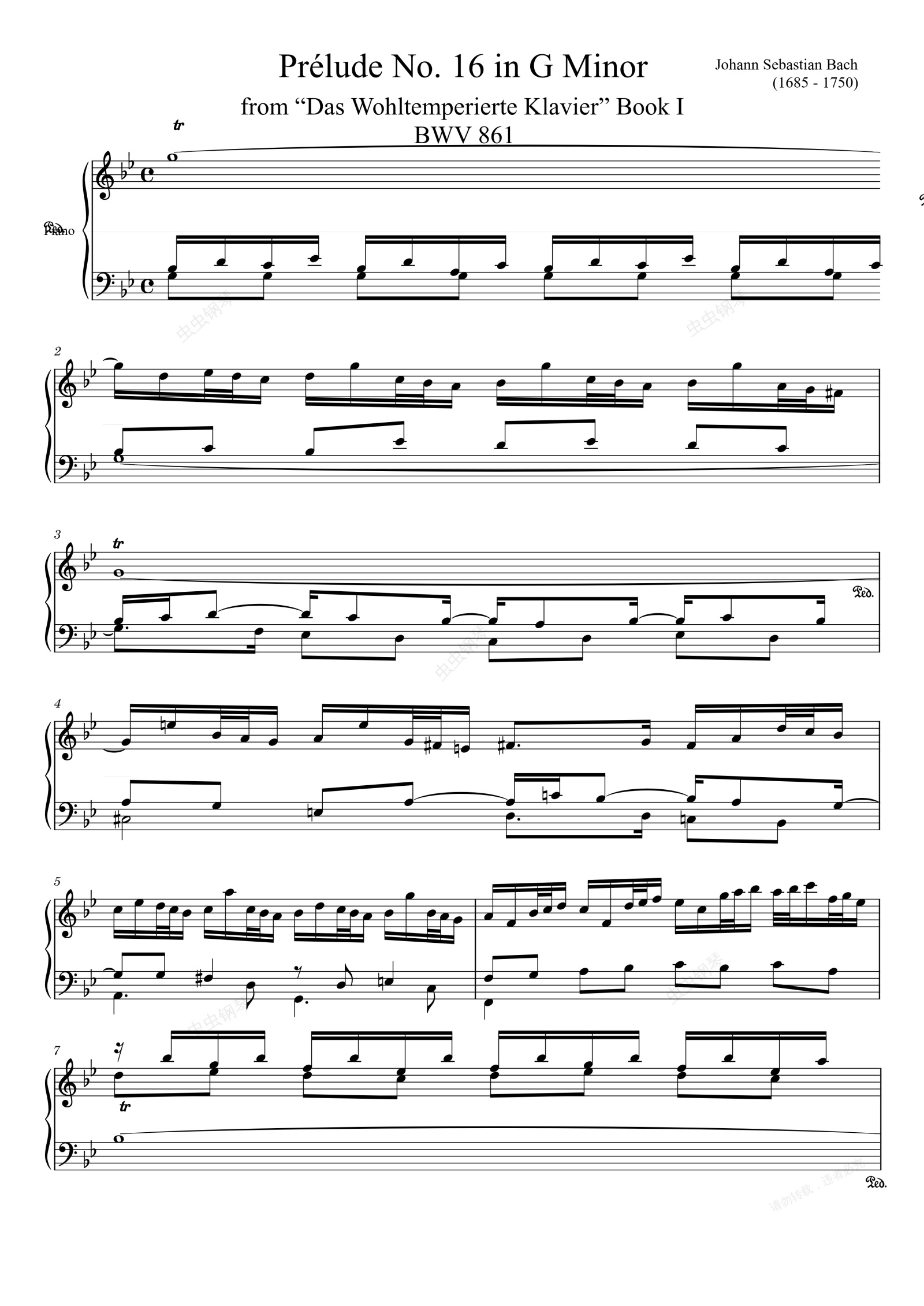钢琴谱:Prélude No. 16 BWV 861 in G Minor