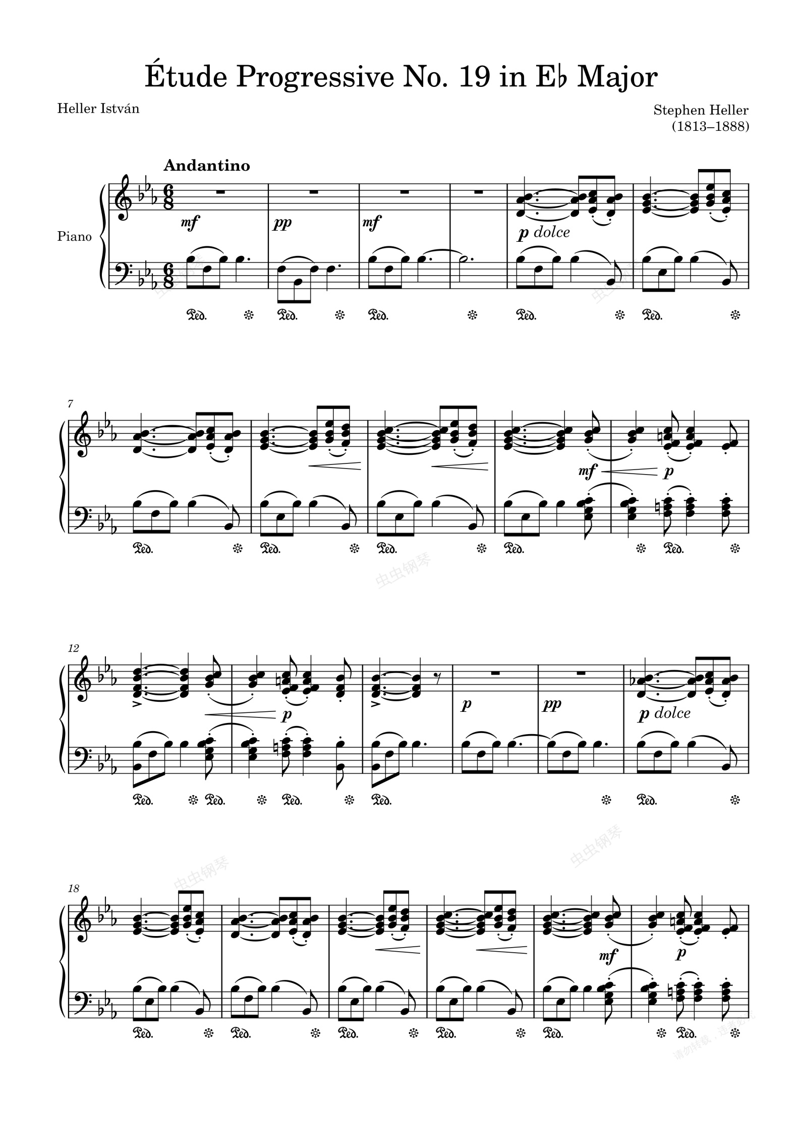 钢琴谱:Étude Progressive Opus 46 No. 19 in E♭ Major – Heller