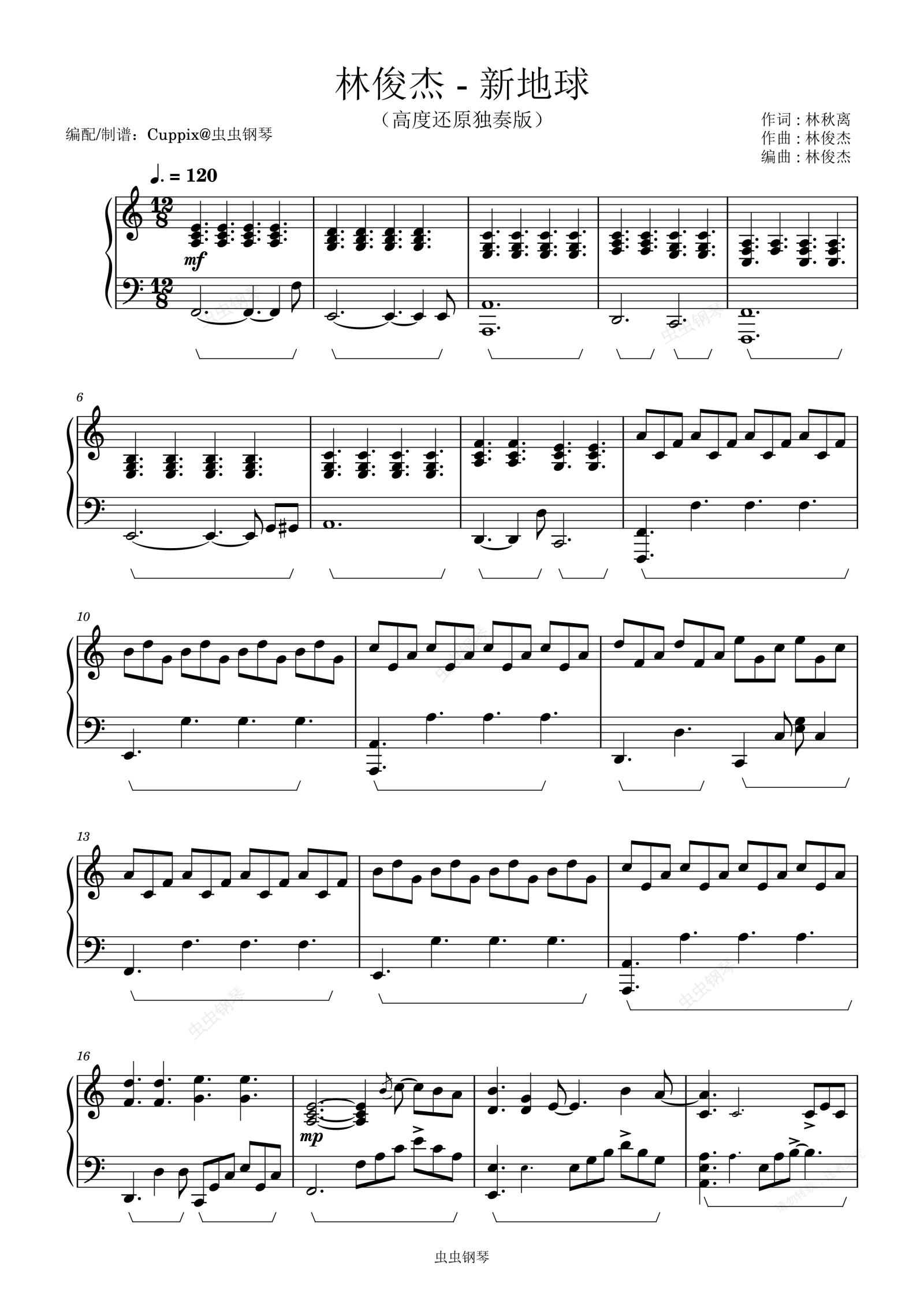 钢琴谱:林俊杰《新地球》Cuppix编配-高度还原独奏版
