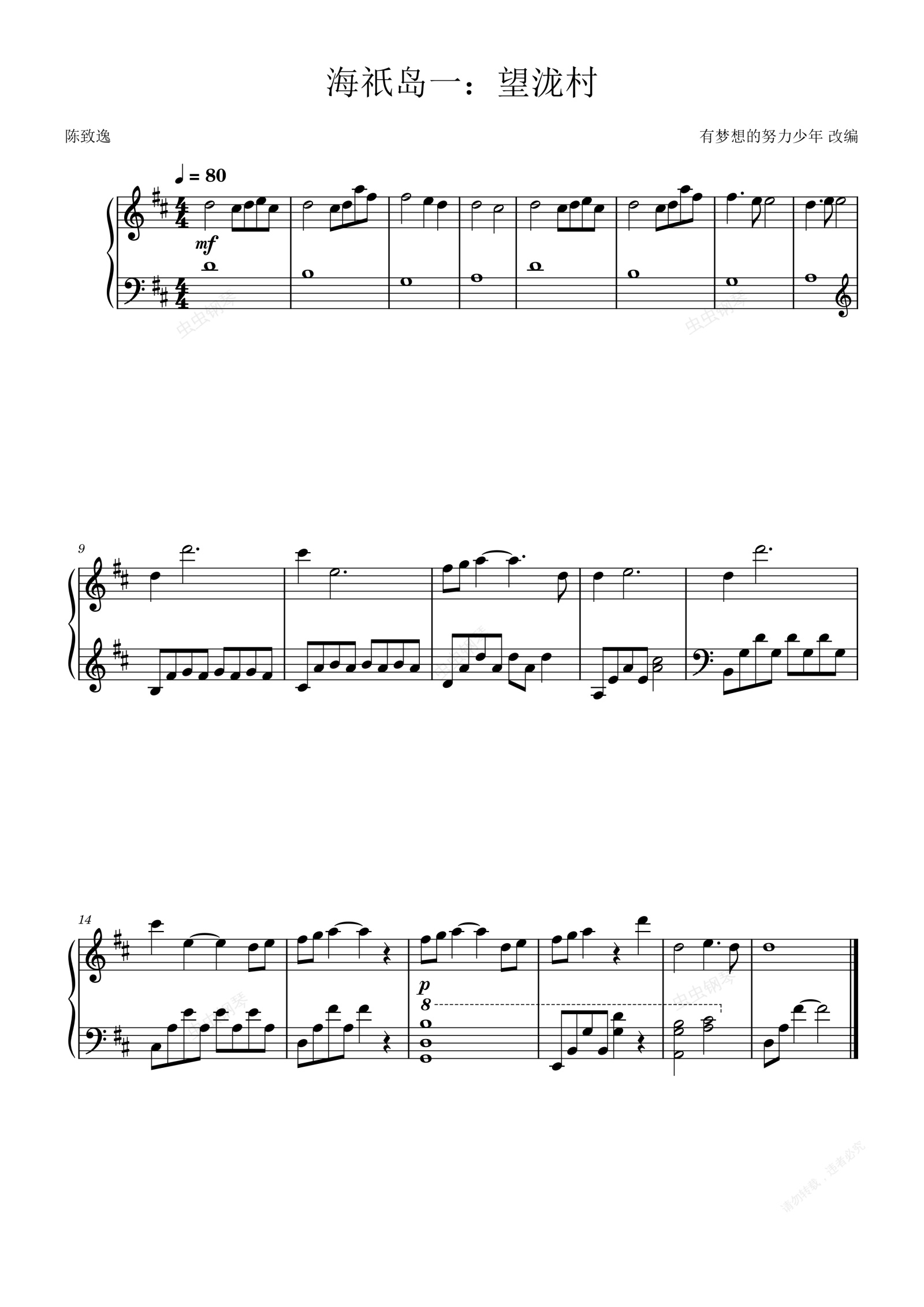 钢琴谱:【原神】海祇岛一:望泷村BGM
