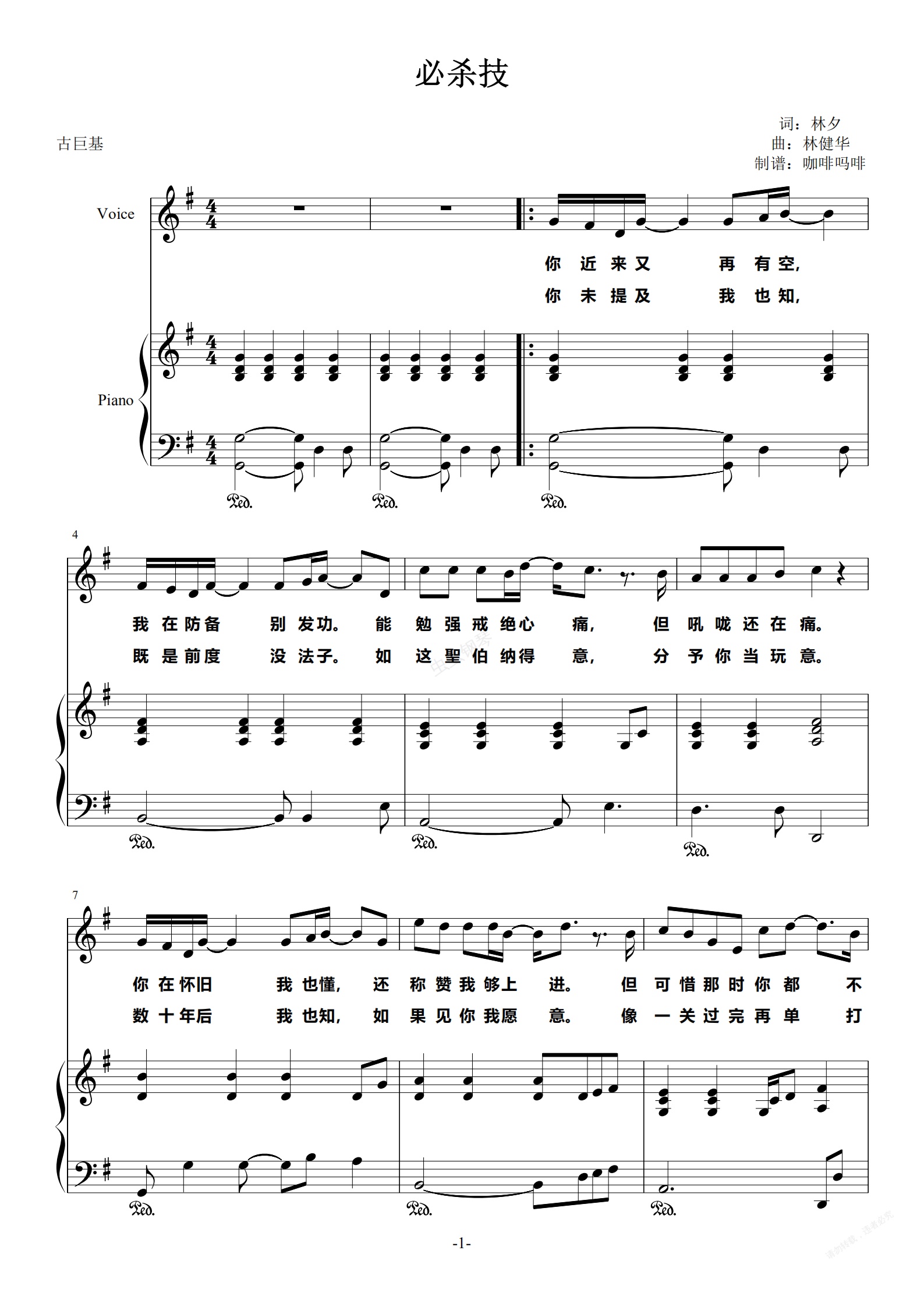 钢琴谱:必杀技-古巨基 钢琴伴奏谱