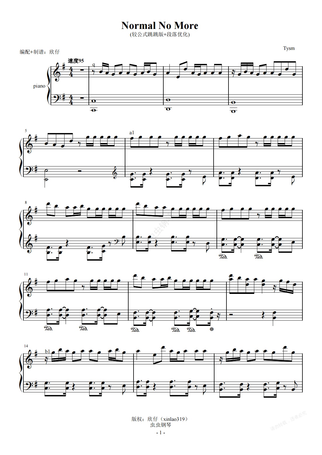 钢琴谱:Tysm-G《Normal No More》(较公式化跳跳版+段落优化)