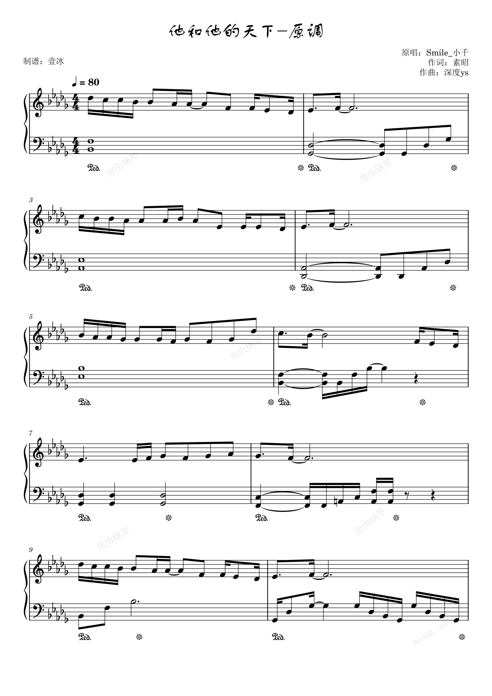 钢琴谱:他和他的天下//Smile_小千-原调