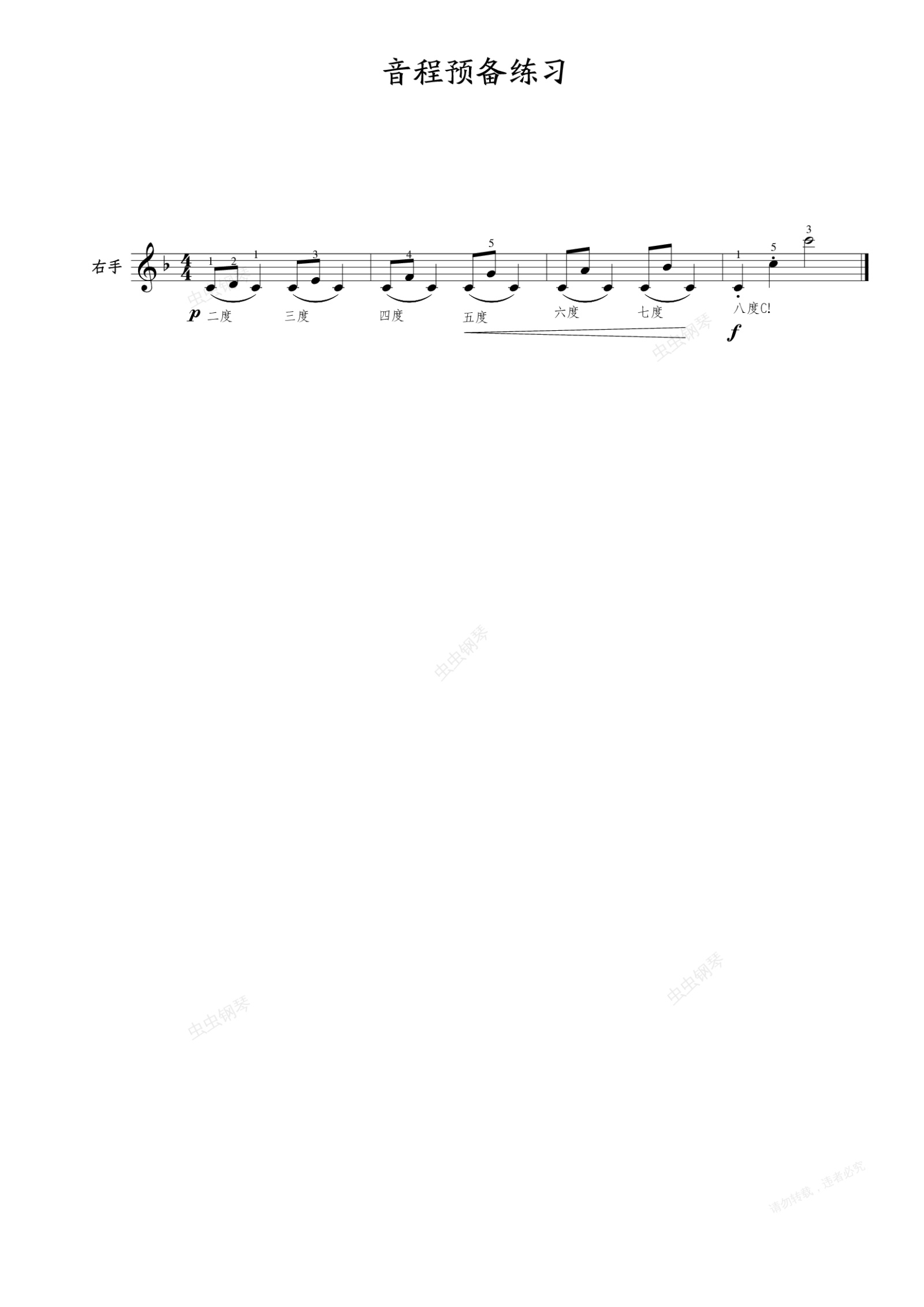 钢琴谱:2-1. 音程预备练习(右手)