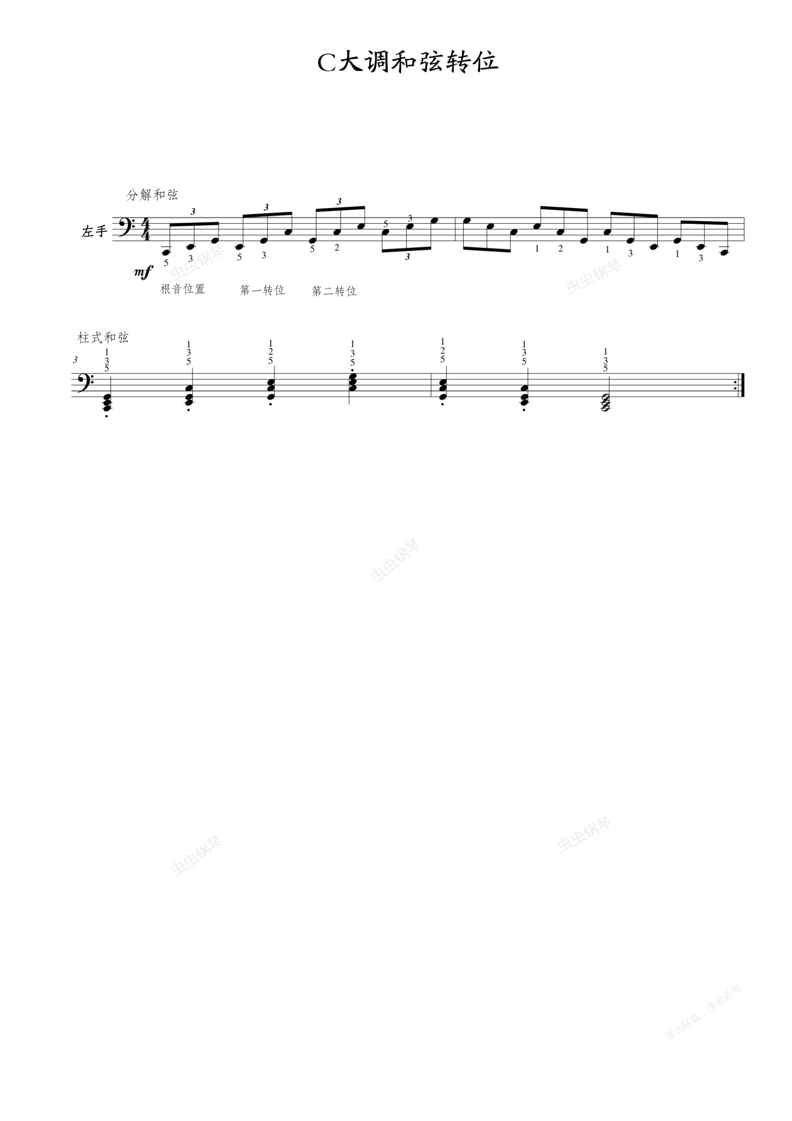 钢琴谱:10-2.1. C大调和弦转位(左手)