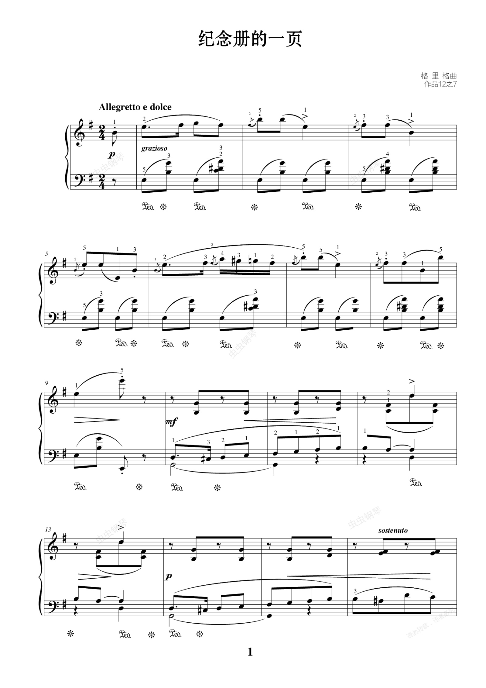 钢琴谱:20. 纪念册的一页(作品12之7)