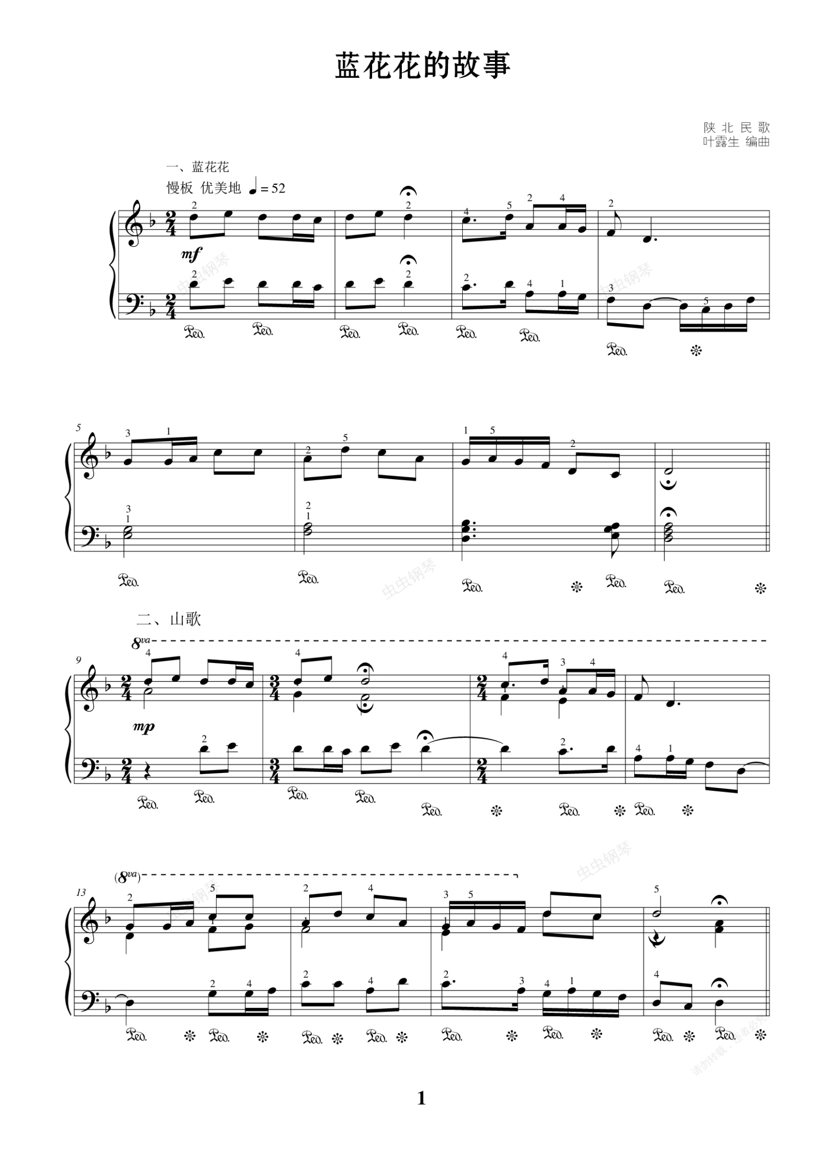 钢琴谱:22. 蓝花花的故事