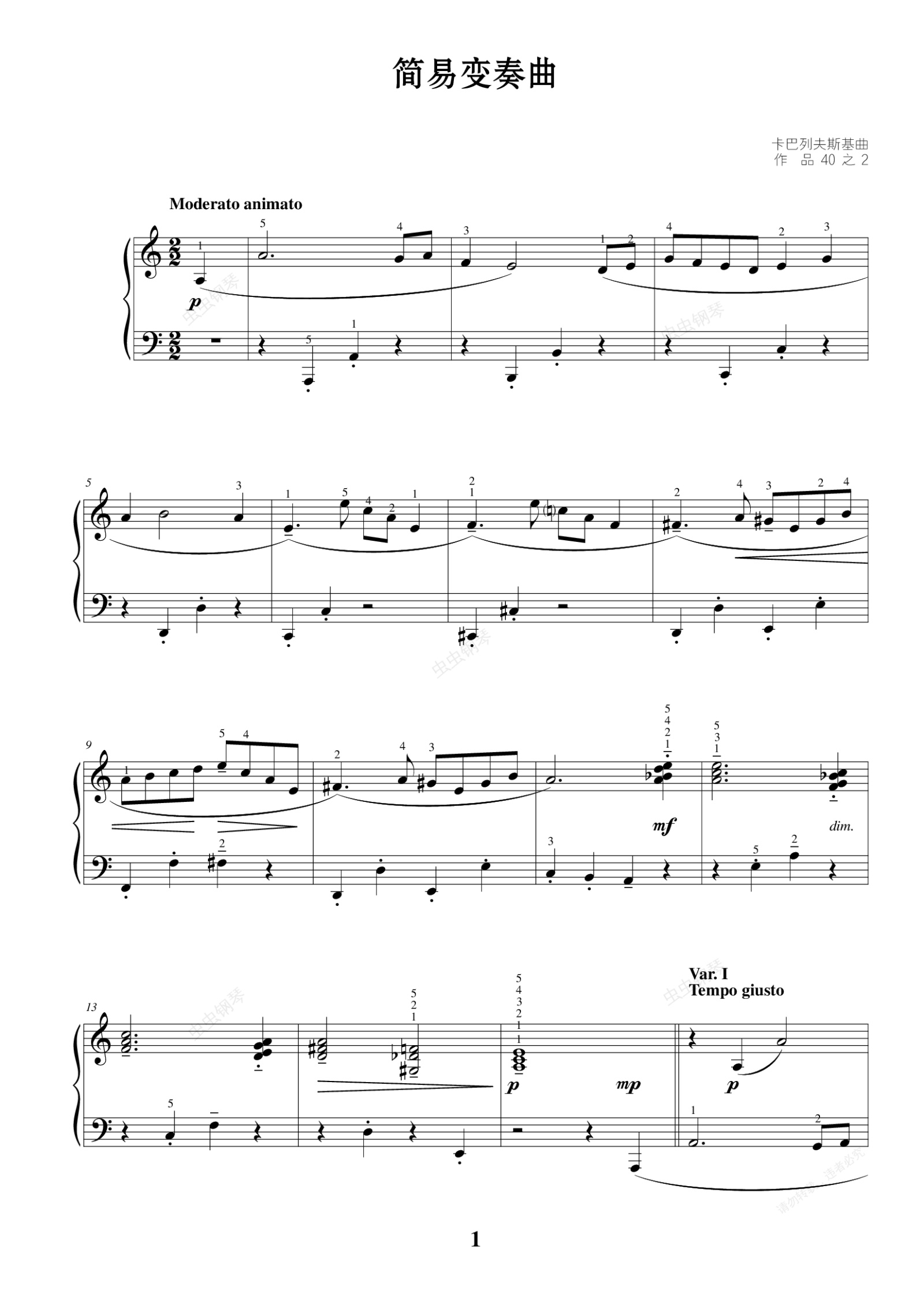 钢琴谱:50. 简易变奏曲(作品40之2)