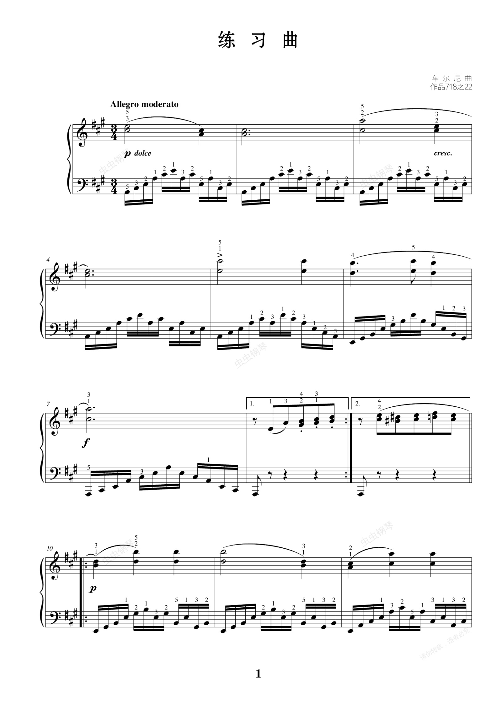 钢琴谱:1. 练习曲(作品718之22)