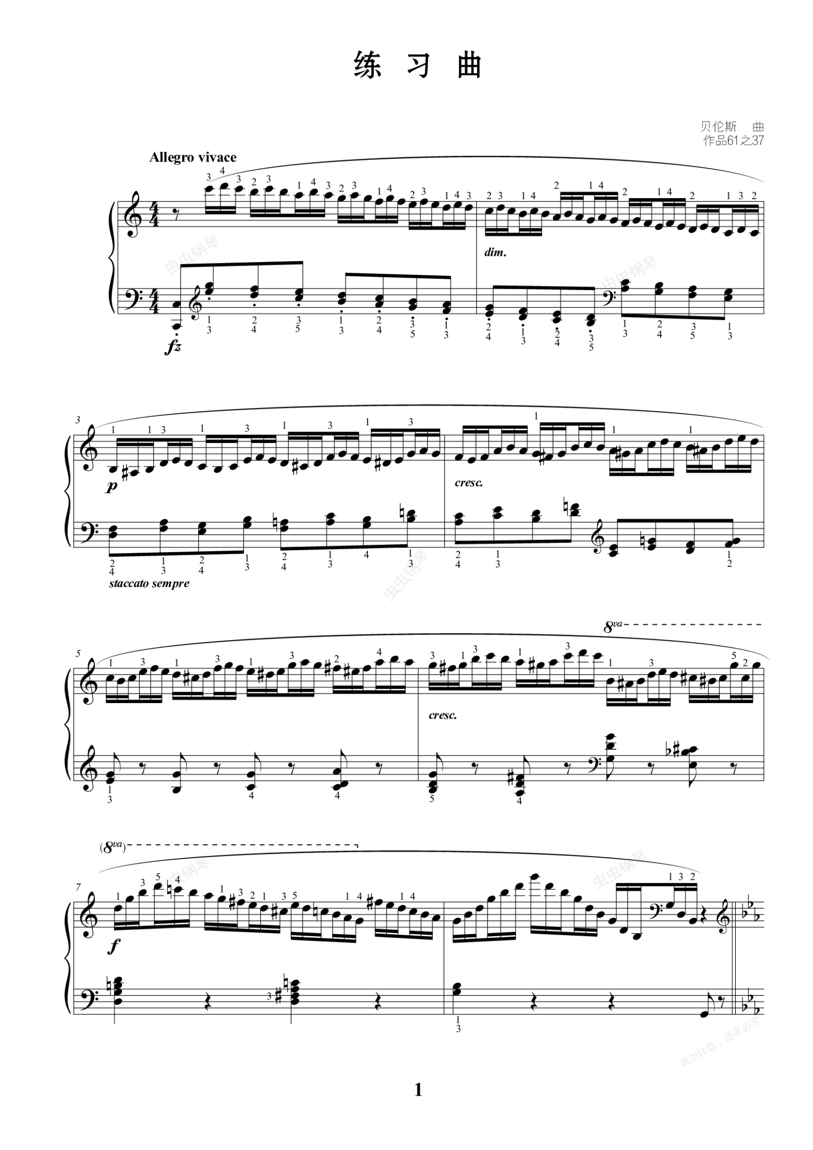 钢琴谱:16. 练习曲(作品61之37)