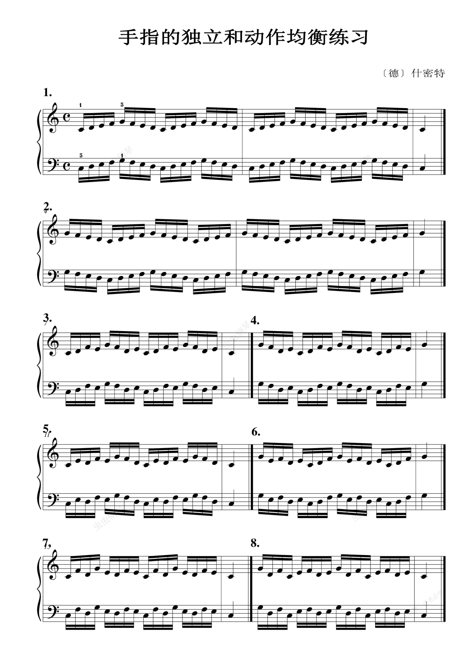 钢琴谱:01.手指的独立和动作均衡练习