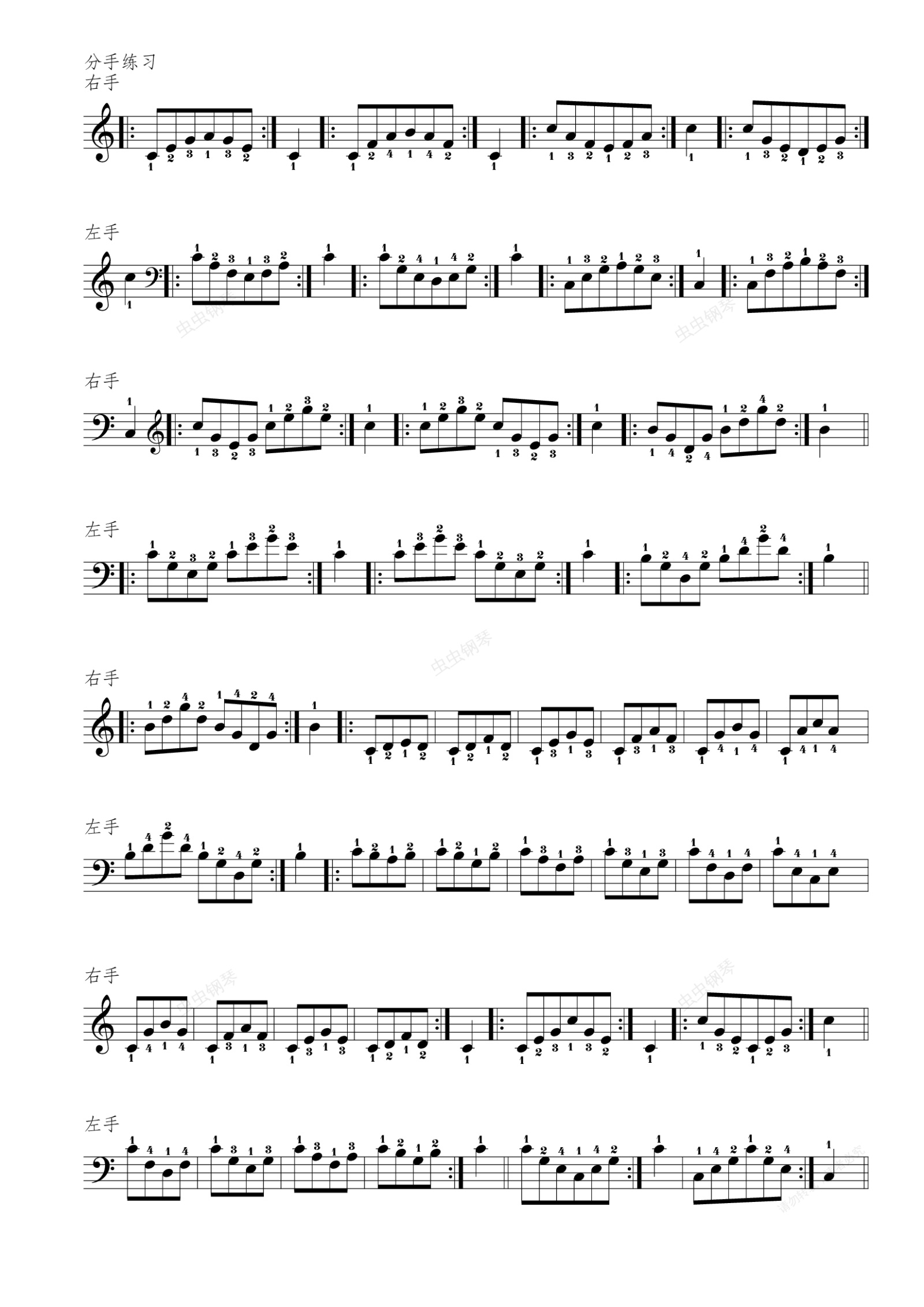 钢琴谱:03.拇指从其他手指手下方穿过的练习2