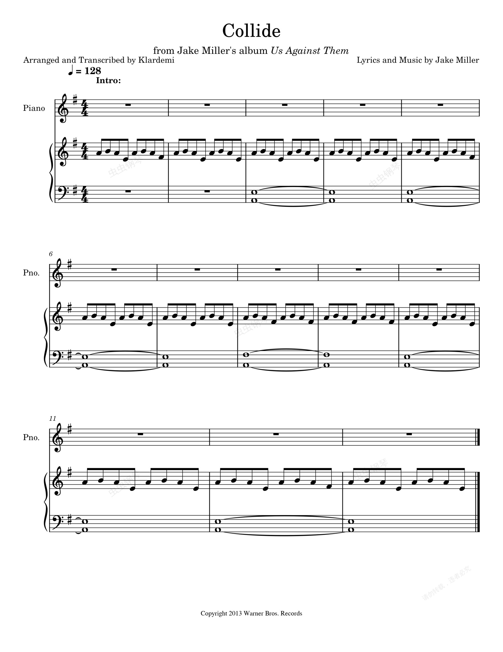 钢琴谱:Collide-Jake Miller