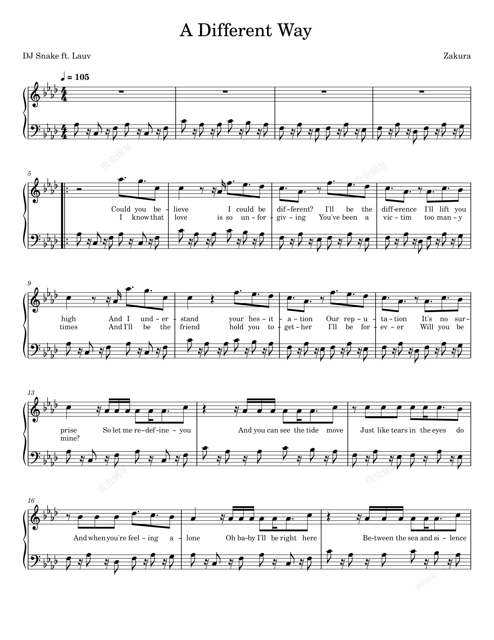 钢琴谱:A Different Way-DJ Snake / Lauv