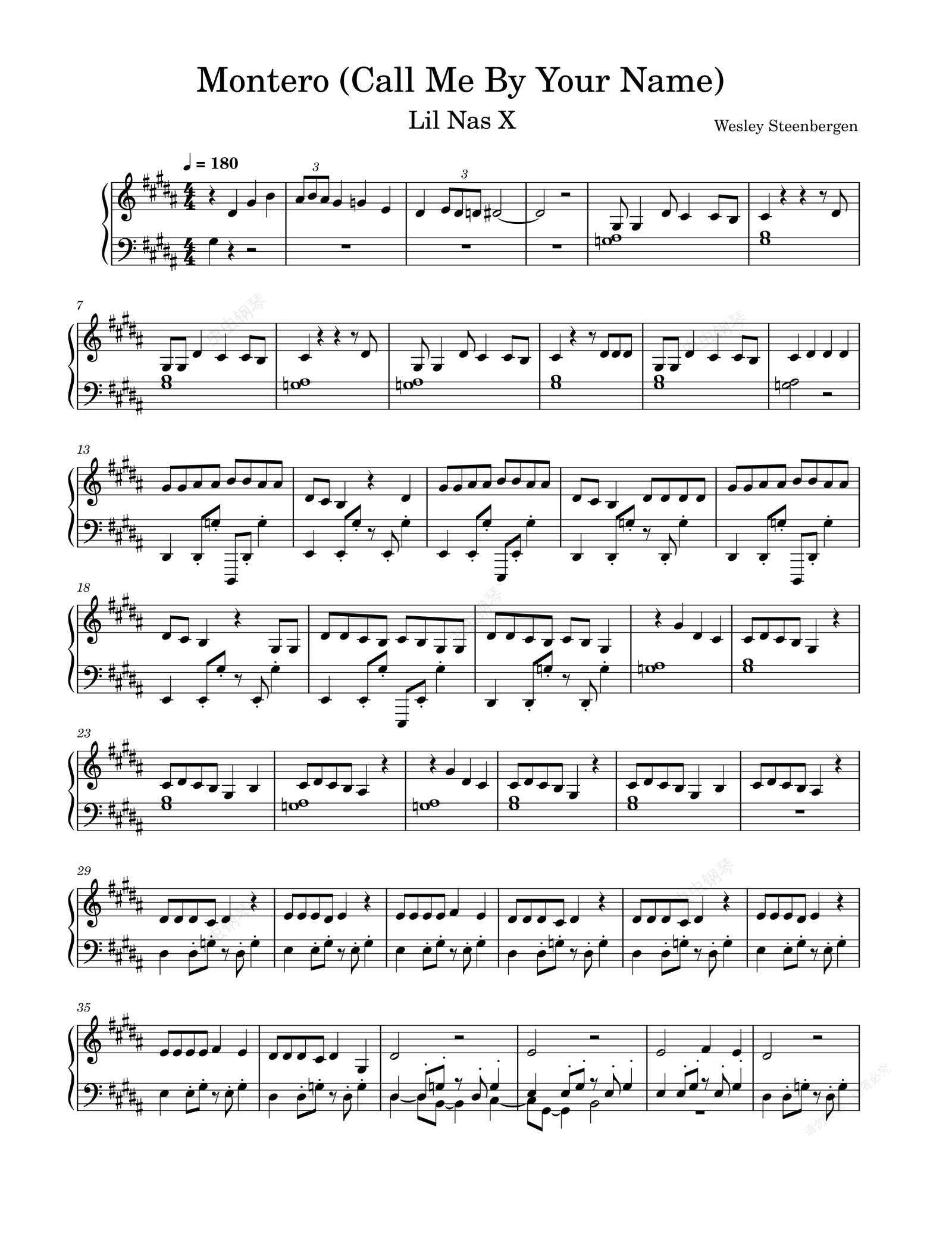 钢琴谱:MONTERO (Call Me By Your Name)-Lil Nas X