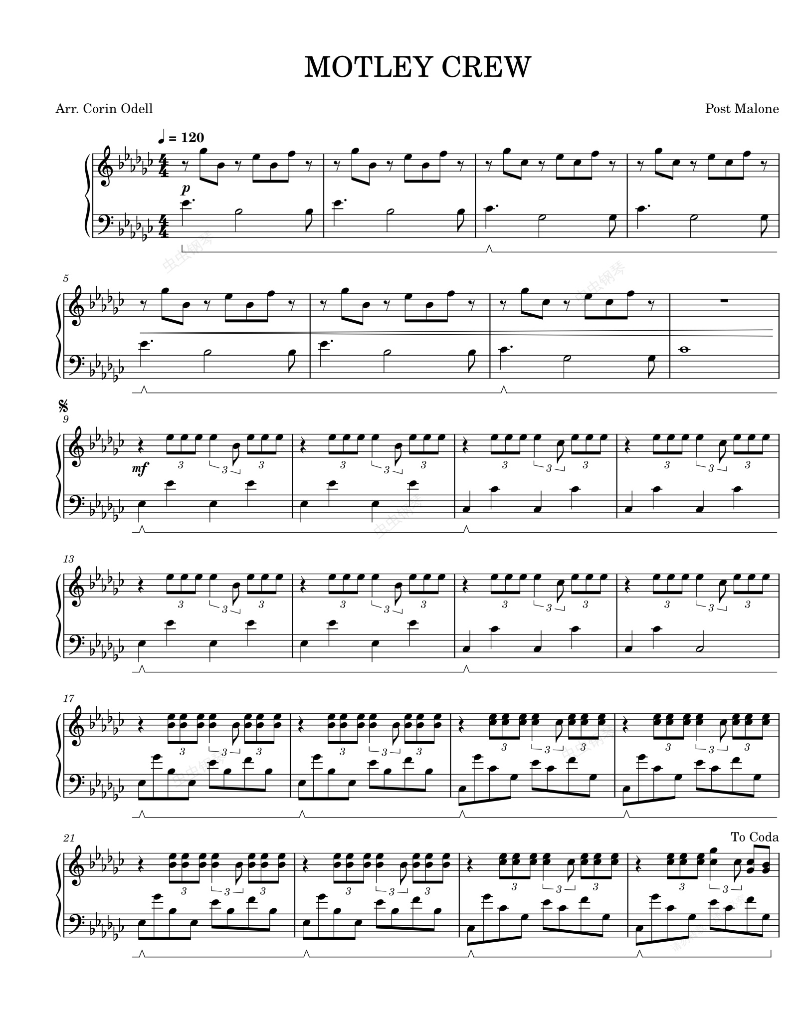 钢琴谱:MOTLEY CREW-Post Malone
