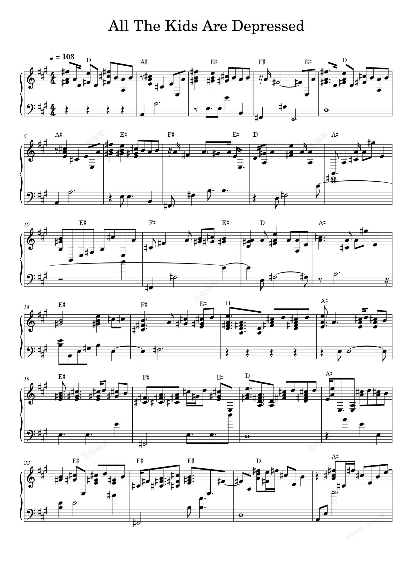 钢琴谱:All The Kids Are Depressed-Jeremy Zucker
