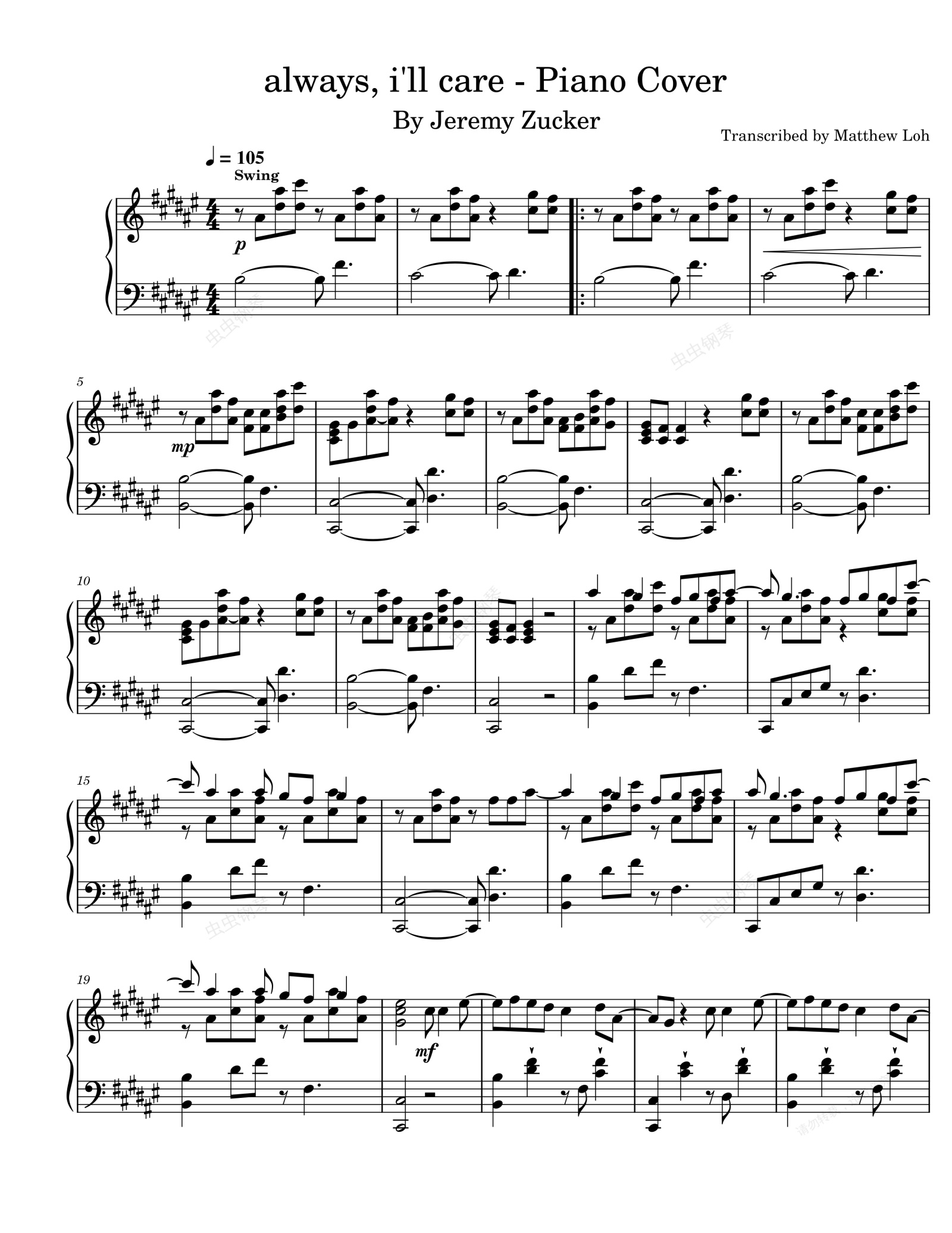 钢琴谱:always, i'll care-Jeremy Zucker/Danny Rakow