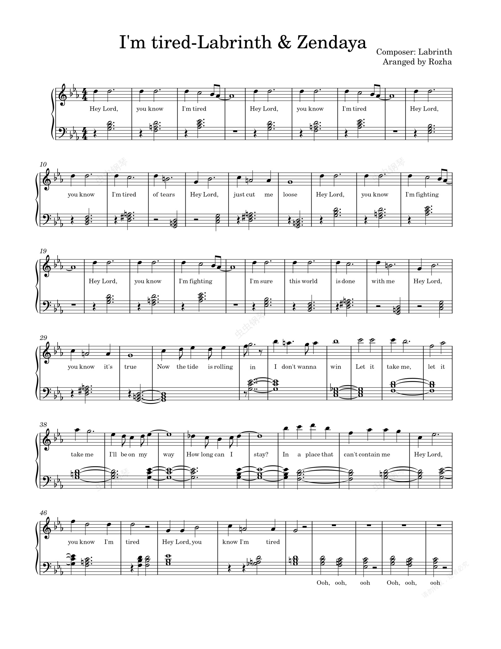 钢琴谱:Labrinth/Zendaya-I'm Tired